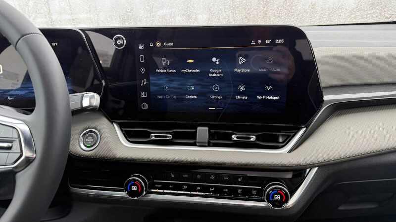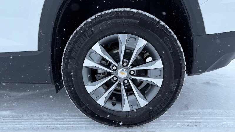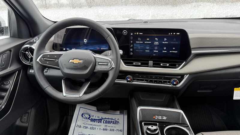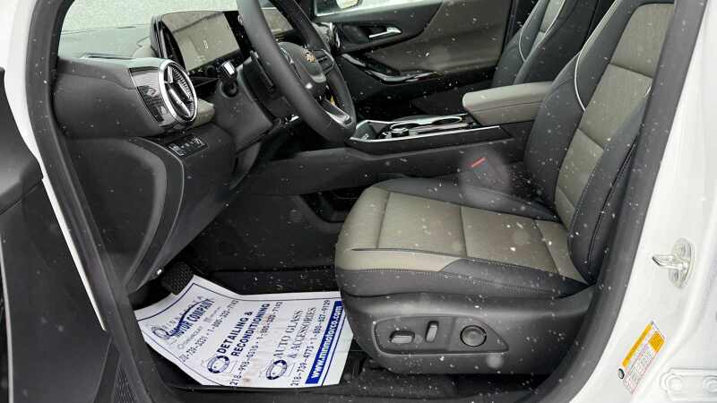 CONVENIENCE PACKAGE II includes (A2X) 8-way power driver seat adjuster, (AL9) 2-way power driver lumbar control, (ASV) cabin humidity and windshield sensor, (K7A) Wireless Phone Charging for portable devices, (CE1) Rainsense intermittent front wipers, (CJ2) dual-zone automatic climate control, (CMO) Heated Wiper Park, (TCP) AutoSense, hands-free power programmable liftgate, (UG1) Universal Home Remote and (VK8) sunglass holder (Also includes Evotex seating in (H9F) Black or (ENY) Artemis Gray.), SUNROOF, POWER, DUAL GLASS, PANORAMIC, SLIDING with power sunshade, LPO, FLOOR LINER PACKAGE Includes (RIA) All-weather floor liners, LPO, (RIS) Second Row All-weather mat, LPO and (VLI) Cargo mat, LPO. HEATED WIPER PARK, ENGINE, 1.5L TURBO DOHC 4-CYLINDER, SIDI, VVT (STD), TRANSMISSION, 8-SPEED AUTOMATIC (STD), UNIVERSAL HOME REMOTE includes garage door opener, programmable. Chevrolet AWD LT with Summit White exterior and Artemis Gray interior features a 4 Cylinder Engine with 175 HP at 5600 RPM*.