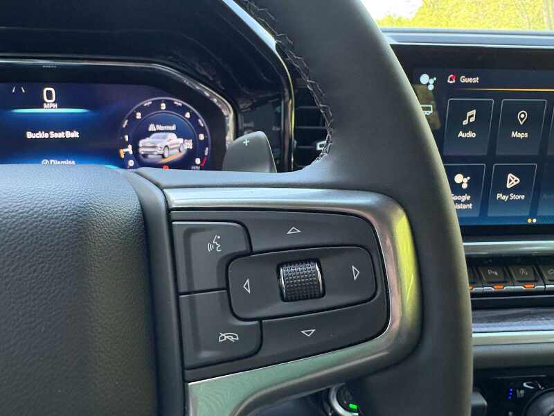 ENGINE, 6.2L ECOTEC3 V8 (420 hp 313 kW 5600 rpm, 460 lb-ft of torque 624 Nm 4100 rpm) featuring Dynamic Fuel Management that enables the engine to operate in 17 different patterns between 2 and 8 cylinders, depending on demand, to optimize power delivery and efficiency Includes (NQH) 2-speed transfer case.), Z71 OFF-ROAD AND PROTECTION PACKAGE includes (Z71) Z71 Off-Road suspension, (JHD) Hill Descent Control, (NZZ) skid plates, (K47) heavy-duty air filter and Z71 hard badge Includes (QAE) 275/60R20 all-terrain, blackwall tires, (CGN) Chevytec spray-on bedliner and (AAK) All-weather Z71 floor liners, LPO. TECHNOLOGY PACKAGE includes (DRZ) Rear Camera Mirror and (UV6) 15 Diagonal Head-Up Display (Includes (UVN) Bed View Camera. LTZ CONVENIENCE PACKAGE II includes (A48) rear sliding power window, (UG1) Universal Home Remote, (KA6) Rear Heated Outboard Seats, and (KSG) Adaptive Cruise Control-Camera, TAILGATE, MULTI-FLEX with six functional load/access features, NOTE Auto release can be disabled if ball hitch is installed. See Owners manual for details, AUDIO SYSTEM, CHEVROLET INFOTAINMENT 3 PREMIUM SYSTEM with Google built-in compatibility (select service plan required, terms and limitations apply) including navigation capability, 13.4 diagonal HD color touchscreen, includes multi-touch display, AM/FM stereo