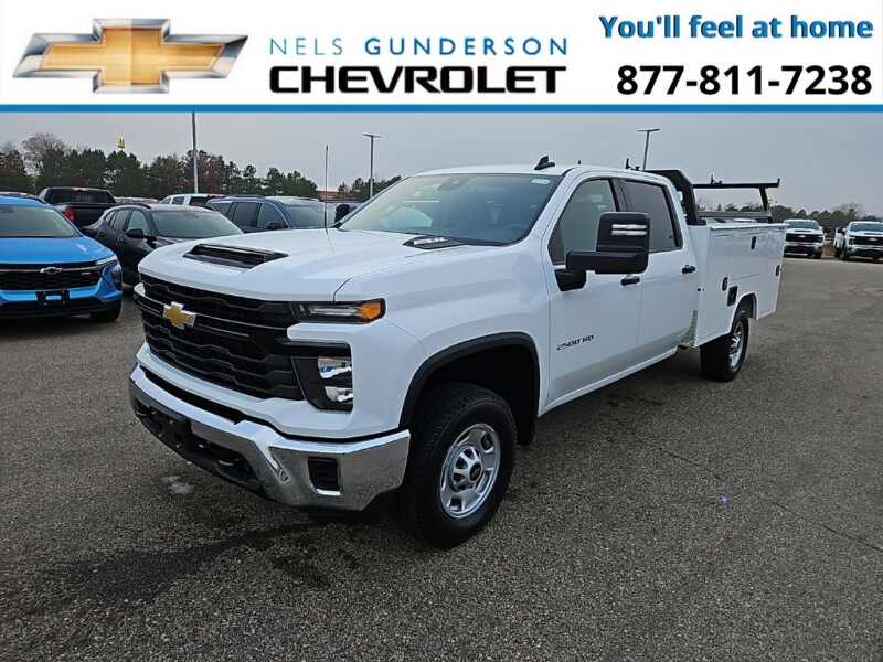 Nels Gunderson Chevrolet is honored to offer this hard-working 2024 Chevrolet Silverado 2500HD Work Truck in Summit White, beautifully equipped with Preferred Equipment Group 1WT (170 Amp Alternator, 2-Speed Electronic Shift Transfer Case, 3.5 Diagonal Monochromatic Display DIC, Black Front Bumper, Black Mirror Caps, Black Rear Bumper, Bluetooth For Phone, Chevrolet Connected Access Capable, Compass, HD Rear Vision Camera, High-Visibility Vertical Trailering Mirrors, Locking Tailgate, Manual Tailgate Function w/No EZ Lift, Manual Tilt-Wheel Steering Column, OnStar & Chevrolet Connected Services Capable, Power Door Locks, Power Front Windows w/Driver Express Up/Down, Power Rear Windows w/Express Down, Push Button Start, Rear 60/40 Folding Bench Seat (Folds Up), Remote Keyless Entry, Rubberized-Vinyl Floor Covering, Solar Absorbing Tinted Glass, Standard Tailgate, Wi-Fi Hotspot Capable, and Wireless Phone Projection), Suspension Package, WT Convenience Package (Deep-Tinted Glass, Electric Rear-Window Defogger, Electronic Cruise Control w/Set & Resume Speed, EZ Lift Power Lock & Release Tailgate, and Heated Vertical Trailering Mirrors), 10-Speed Automatic, 4WD, Jet Black Vinyl, 120-Volt Interior Power Outlet, 3.73 Rear Axle Ratio, 4-Wheel Disc Brakes, 6 Speakers, 6-Speaker Audio System, 720 Cold-Cranking Amps Heavy-Duty Battery, ABS brakes, Air Conditioning, AM/FM radio, Apple CarPlay/Android Auto, Auto High-beam Headlights, Brake assist, Chrome Front Bumper, Delay-off headlights, Driver door bin, Dual front impact airbags, Dual front side impact airbags, Dual Rear USB Ports (Charge Only), Durabed Pickup Bed, Electronic Stability Control, Front 40/20/40 Split-Bench Seats w/Lockable Storage, Front anti-roll bar, Front Center Armrest w/Storage, Front License Plate Kit, Front reading lights, Front wheel independent suspension, Fully automatic headlights, Illuminated entry, Integrated Trailer Brake Controller, Low tire pressure warning, Not Equipped w/Rear USB Ports, Occupant sensing airbag, Outside temperature display, Overhead airbag, Overhead console, Panic alarm, Passenger door bin, Passenger vanity mirror, Power steering, Power windows, Premium audio system Chevrolet Infotainment 3, Radio Chevrolet Infotainment 3 System, Rear reading lights, Rear step bumper, Remote keyless entry, Split folding rear seat, Tachometer, Tilt steering wheel, Traction control, Trip computer, Upfitter Switch Kit (5), Variably intermittent wipers, Vinyl Seat Trim, Voltmeter, and Wheels 17 Silver Painted Steel Backup Camera Bluetooth. Price includes $1000 - Customer Cash. Exp. 12/01/2025