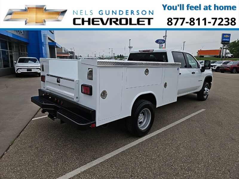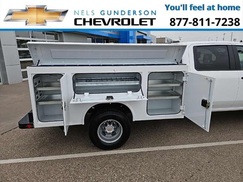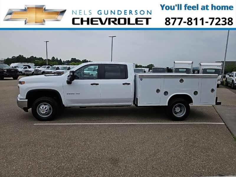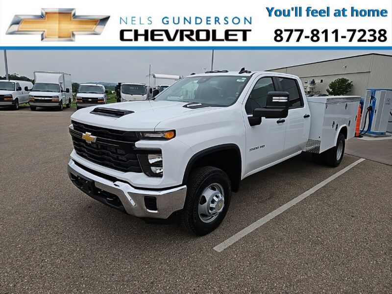 Nels Gunderson Chevrolet is pleased to offer this dependable 2025 Chevrolet Silverado 3500HD Work Truck in Summit White, beautifully equipped with Preferred Equipment Group 1WT (170 Amp Alternator, 2-Speed Electronic Shift Transfer Case, 3.5 Diagonal Monochromatic Display DIC, Black Front Bumper, Black Mirror Caps, Bluetooth For Phone, Compass Located In Instrument Cluster, High-Visibility Molded in Black Outside Mirrors, Manual Tilt-Wheel Steering Column, Power Rear Windows w/Express Down, Rear 60/40 Folding Bench Seat (Folds Up), Rubberized-Vinyl Floor Covering, Solar Absorbing Tinted Glass, and Steering Wheel Mounted Electronic Cruise Control), Snow Plow Prep Package (220 Amp Alternator), Suspension Package, WT Convenience Package (Deep-Tinted Glass and Electric Rear-Window Defogger), 10-Speed Automatic, 4WD, Black Cloth, 120-Volt (400 Watts) Interior Power Outlet, 17 Painted Steel Wheels, 18 Painted Steel Wheels, 4-Way Manual Driver Seat Adjuster, 4-Way Manual Passenger Seat Adjuster, 4-Wheel Disc Brakes, 40 Gallon (151L) Rear Only Fuel Tank, 6 Speakers, 6-Speaker Audio System Feature, ABS brakes, Air Conditioning, AM/FM radio, Auto High-beam Headlights, Brake assist, Compass, Delay-off headlights, Driver door bin, Dual front impact airbags, Dual front side impact airbags, Dual Rear USB Ports (Charge Only), Dual rear wheels, Electronic Stability Control, Engine Block Heater, Exhaust Brake, Front 40/20/40 Split-Bench Seat, Front anti-roll bar, Front Center Armrest w/Storage, Front Chrome Bumper, Front Grille Bar w/Black Mesh Inserts, Front License Plate Kit, Front reading lights, Front wheel independent suspension, Fully automatic headlights, Heavy-Duty 80 Amp-Hr Battery, Illuminated entry, Low tire pressure warning, Manual Tilt Inside Rearview Mirror, Occupant sensing airbag, OnStar Services Capable, Outside temperature display, Overhead airbag, Overhead console, Panic alarm, Passenger door bin, Passenger vanity mirror, Power steering, Power windows, Radio Chevrolet Infotainment 3 System, Rear reading lights, Remote keyless entry, Speed control, Split folding rear seat, Tachometer, Tilt steering wheel, Traction control, Trip computer, Upfitter Switch Kit (5), Variably intermittent wipers, Vinyl Seat Trim, Voltmeter, and Winter Grille Cover Backup Camera Bluetooth. Price includes $1000 - Customer Cash. Exp. 12/01/2025