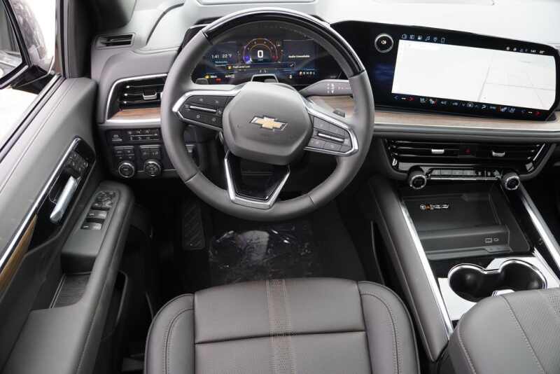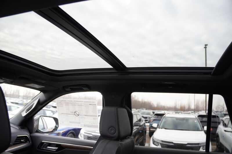Dark Ash Metallic exterior * Jet Black interior * 6.2L ECOTEC3 V8 engine * 10 speed automatic transmission * Adaptive cruise control * Magnetic ride control * Mechanical limited slip differential * Automatic stop start engine * 22 inch bright machined aluminum wheels painted after midnight * StabiliTrak traction control * Electronic precision shift * Trailer equipment * 17.7 inch advanced color LCD display with Google built in compatibility including navigation capability and connected apps * Wireless Apple CarPlay and wireless Android Auto for compatible phones * Wireless charging for devices * 10 speaker Bose audio system * 15 inch head up display * Keyless open lock and start * SiriusXM audio with trial * Universal home remote * Tri zone automatic HVAC * Rear camera mirror * Heated and ventilated front power bucket seats with perforated leather seating surfaces * Memory settings driver seat outside mirrors steering column * Second row heated bucket seats power release * Third row 60 40 split bench power fold * Interior camera requires future software update * LED headlamps and taillamps with animated lighting * LED daytime running lamps * LED front fog lamps * Power fold mirrors with turn signal indicators * Dual exhaust with dual tips * Enhanced automatic emergency braking * Front pedestrian and bicyclist braking * Forward collision alert * IntelliBeam * HD surround vision * Enhanced automatic parking assist * Rear cross traffic braking * Rear pedestrian alert * Safety alert seat * Theft deterrent system *