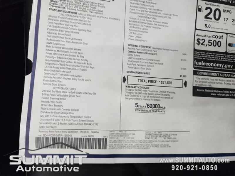 * Call Now! 1-(920)-921-0850 . Check out our Full inventory at www.SUMMITAUTO.com ! Summit Automotive Chrysler Dodge Jeep Ram in Fond du Lac, Wisconsin also Proudly Serving Oshkosh, Madison, Milwaukee, Sheboygan, Appleton, and Waupun is a family owned and operated dealership since 1959. We take great pride in our new and used car and truck center with vehicles to fit everyone's budget. We have ON THE SPOT FINANCING. BAD CREDIT OR GOOD CREDIT, we work with over 20 lenders to get you APPROVED AT THE MOST COMPETITIVE RATES. We provide AIRPORT TRANSPORTATION and NATIONWIDE DELIVERY OPTIONS. We are conveniently located on HWY 41 at EXIT 98, Hwy 151 at Military Rd. Exit . Just Look For The TRUCKS ON 41. Advertised price does not include, tax, title, registration and service fee.