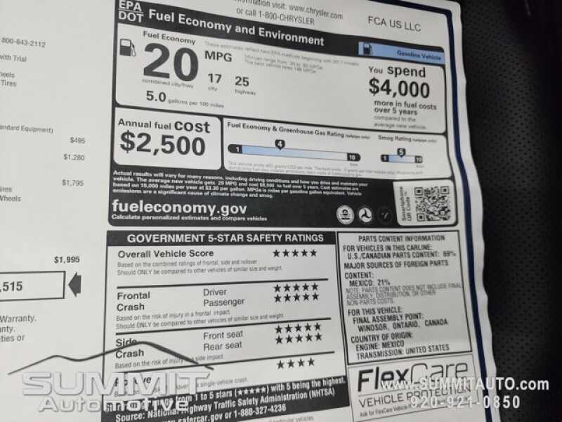 * Call Now! 1-(920)-921-0850 . Check out our Full inventory at www.SUMMITAUTO.com ! Summit Automotive Chrysler Dodge Jeep Ram in Fond du Lac, Wisconsin also Proudly Serving Oshkosh, Madison, Milwaukee, Sheboygan, Appleton, and Waupun is a family owned and operated dealership since 1959. We take great pride in our new and used car and truck center with vehicles to fit everyone's budget. We have ON THE SPOT FINANCING. BAD CREDIT OR GOOD CREDIT, we work with over 20 lenders to get you APPROVED AT THE MOST COMPETITIVE RATES. We provide AIRPORT TRANSPORTATION and NATIONWIDE DELIVERY OPTIONS. We are conveniently located on HWY 41 at EXIT 98, Hwy 151 at Military Rd. Exit . Just Look For The TRUCKS ON 41. Advertised price does not include, tax, title, registration and service fee.