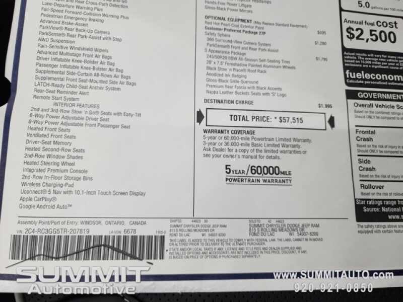 - VIN 2C4RC3GG5TR207819