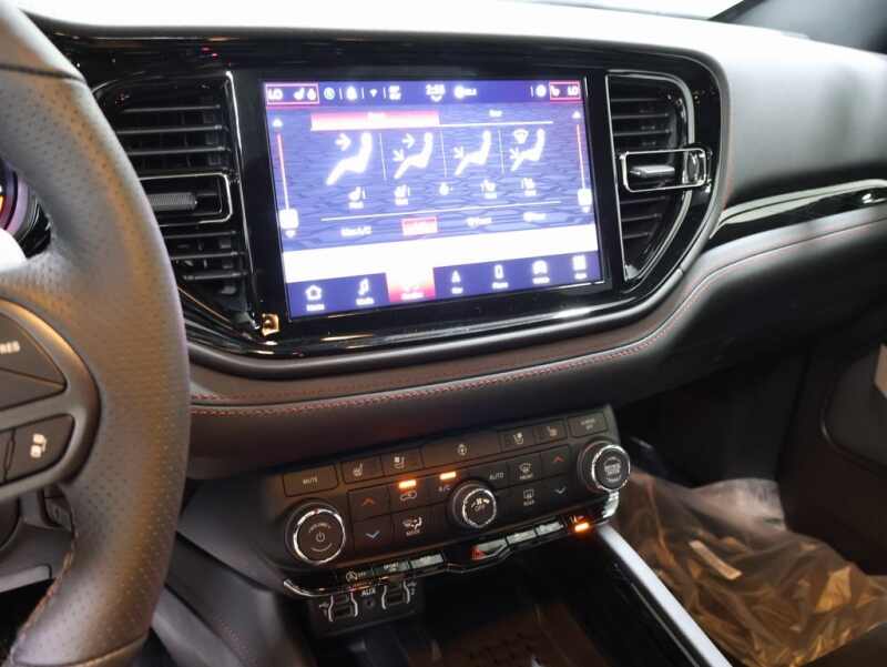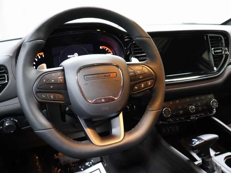 This Dodge Durango is well equipped and includes these key features and benefits, #6 Seat Foam Cushion, 115V Auxiliary Power Outlet, 180 Amp Alternator, 2nd Row Fold/Tumble Captain Chairs, 2nd Row Mini Console w/Cupholders, 2nd Row Seat Mounted Inboard Armrests, 3rd Row Floor Mat & Mini Console, 506 Watt Amplifier, 6-Passenger Seating, 7 & 4 Pin Wiring Harness, 9 Alpine Amplified Speakers w/Subwoofer, Adaptive Cruise Control w/Stop, Advanced Brake Assist, Auto High Beam Headlamp Control, Auto-Dimming Exterior Driver Mirror, Black Roof Rails, Blacktop Leather SRT Performance Seats, Blacktop Redline Package, Blind Spot w/Trailer Detection, Bright Cargo Area Scuff Pads, Bright Front Door Sill Scuff Pads, Class IV Receiver Hitch, Crypto Sweep Etch Accents, Dual Remote USB Port - Charge Only, Exterior Mirrors w/Heating Element, Exterior Mirrors w/Memory, Exterior Mirrors w/Supplemental Signals, Floor Console w/Leather Armrest, Full Speed Forward Collision Warning Plus, Gloss Black Badges, Gloss Black Exterior Mirrors, GT Decal w/Red Tracer, Heated Second Row Seats, Heavy-Duty Engine Cooling, Integrated Roof Rail Crossbars, Lane Departure Warning Plus, Leather Trimmed Bucket Seats, Leather Wrapped Door Panels, LED Auxiliary Low Beam & Turn Signal, ParkSense Front/Rear Park Assist w/Stop, Performance Hood, Power 6x9 Multi-Function Foldaway Mirrors, Power 8-Way Driver Memory 8-Way Passenger Seats, Power Driver/Passenger 4-Way Lumbar Adjust, Power Sunroof, Power Tilt & Telescopic Steering Column, Premium Door Trim Panel, Premium Instrument Panel, Quick Order Package 2BH GT Plus, Radio/Driver Seat/Mirrors Memory, Rain Sensitive Windshield Wipers, Rear Load Leveling Suspension, Red Accent Stitching, Satin Black Dodge Tail Lamp Badge, Security Alarm, Sun Visors w/Illuminated Vanity Mirrors, Trailer Brake Control, Ventilated Front Seats, Wheels 20 x 8.0 Black Noise Aluminum, Wireless Charging Pad.