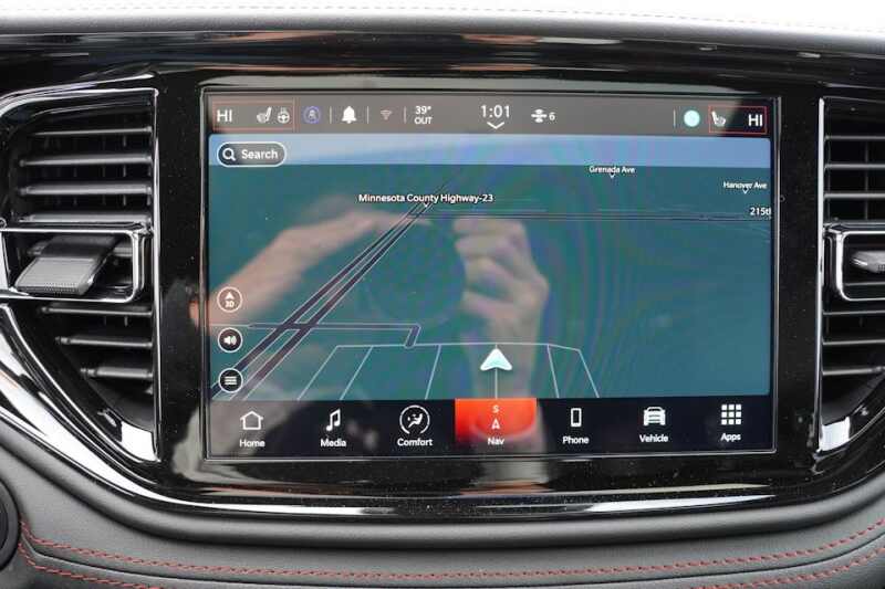 Advanced Multistage Front Air Bags * Supplemental Side Curtain All Row Air Bags * Supplemental Front Seat Mounted Side Air Bags * Driver Inflatable Knee Bolster Air Bag * Heavy Duty 4 Wheel Anti Lock Disc Brakes * Rain Brake Support * 4 Wheel Traction Control * Selectable Steering Modes * ParkView Rear Back Up Camera * ParkSense Rear Park Assist with Stop * Blind Spot and Cross Path Detection * Dodge Connect (Connected Services) with Trial * Front Door Passive Entry and Lock * Push Button Start * Remote Start System * Power Liftgate * Sentry Key Theft Deterrent System * Rear Seat Reminder Alert * Push Push Fuel Filler Door * Capless Fuel Fill * Compact Spare Tire * 24.6 Gallon Fuel Tank * Uconnect 5 Nav with 10.1 Inch Touch Screen Display * 8 Way Power Driver and Manual Passenger Seats * 4 Way Power Lumbar Adjustable Driver Seat * 2nd Row 60 / 40 Fold and Tumble Bench Seat * Red Accent Stitching *