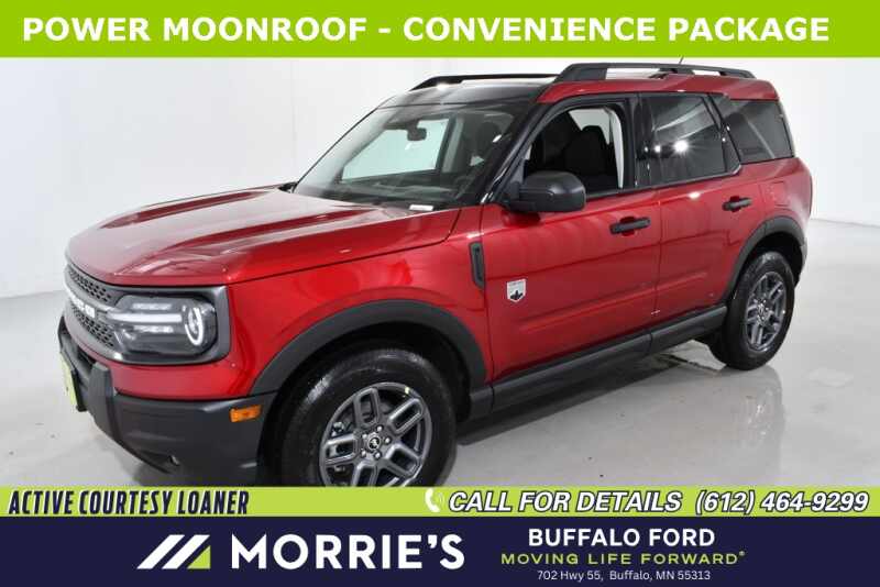 Take on off-road challenges with this 2025 Ford Bronco Sport Big Bend 4x4, powered by a 1.5L EcoBoost engine and all-wheel drive. Finished in Ruby Red Metallic TC with a 5-passenger layout, this SUV features premium upgrades like the Power Moonroof and Convenience Package!