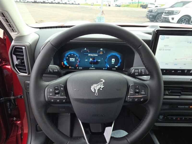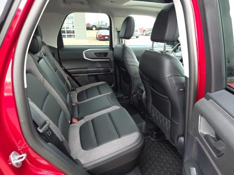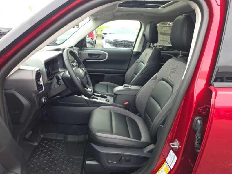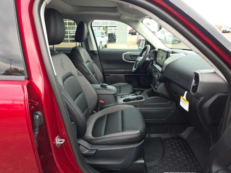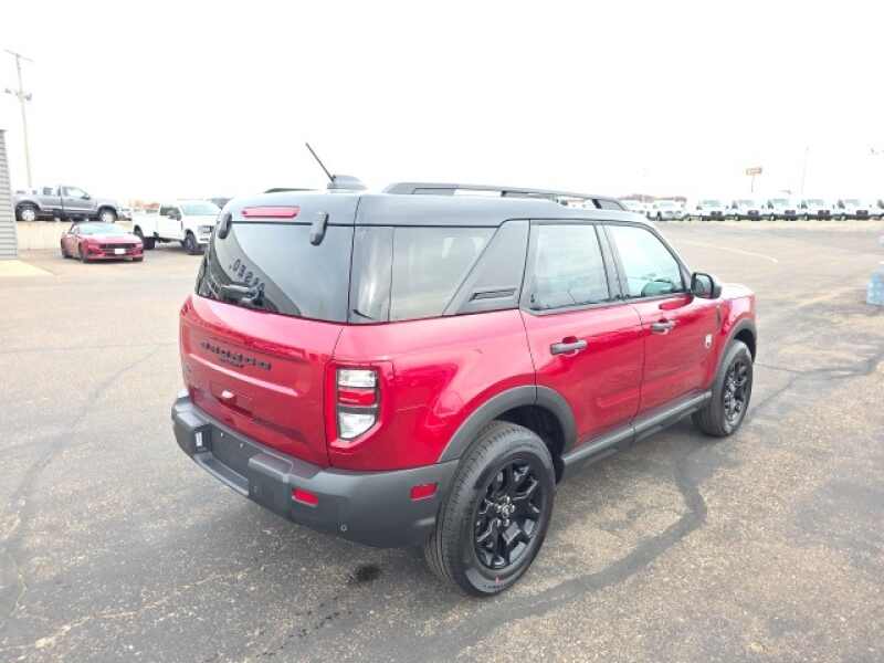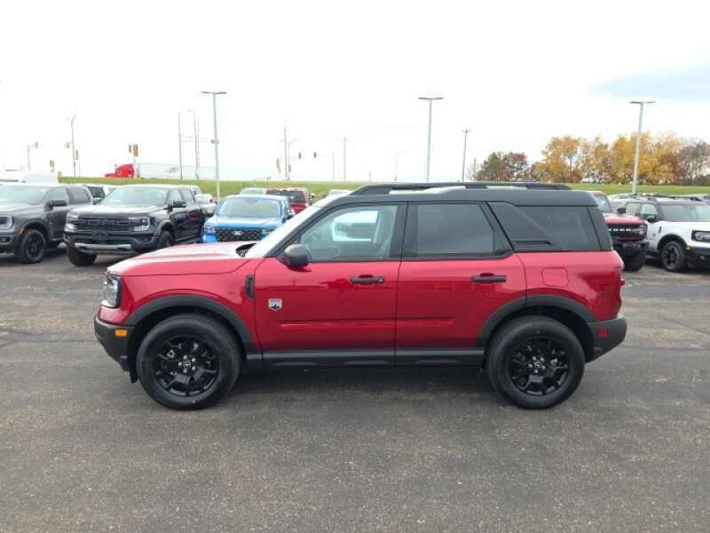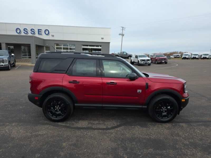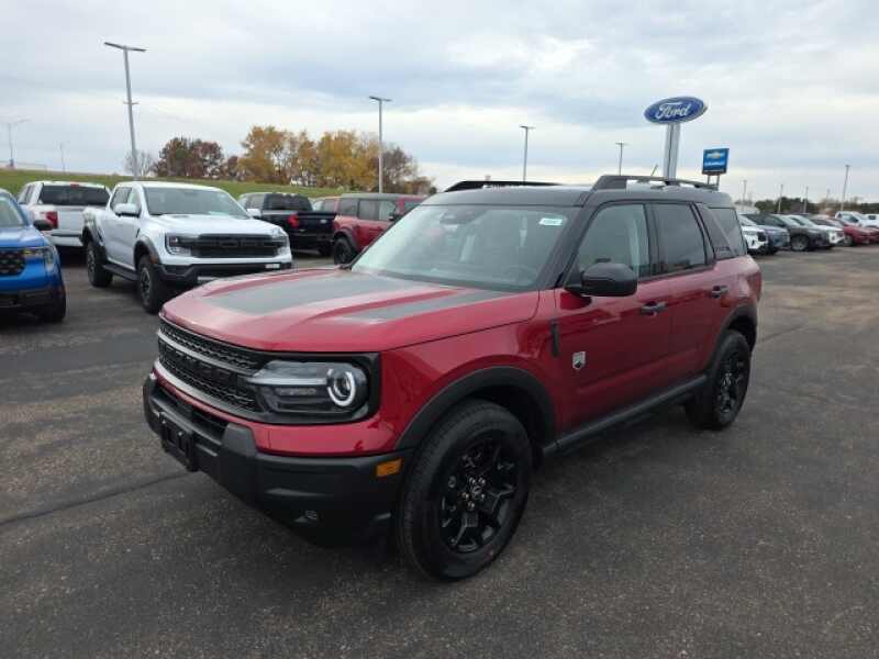 Osseo Ford is delighted to offer this good-looking 2025 Ford Bronco Sport Big Bend in Ruby Red Metallic Tinted Clearcoat, beautifully equipped with Black Appearance Package (Carbon Black Grille w/Black BRONCO Lettering, Cargo Mat, Front & Rear Floor Liners w/o Carpet Mats, Front Driver/Passenger Seat Back Map Pockets, Liftgate w/Black BRONCO SPORT Lettering, Painted Shadow Black Roof, Premium Trimmed Htd Fr Sport Contour Bucket Seats, and Wheels 17 Matte Black-Painted Aluminum), Convenience Package (Heated 8-Way Power Driver's Seat, LED Fog Lamps, Premium Wrapped Steering Wheel, and Universal Garage Door Opener (UGDO)), Equipment Group 200A, 4-Wheel Disc Brakes, 6 Speakers, ABS brakes, Air Conditioning, Alloy wheels, AM/FM radio SiriusXM, AM/FM Stereo, Auto High-beam Headlights, Automatic temperature control, Brake assist, Cargo Management System (Shelf/Divider/Table), Cloth w/Easy-to-Clean Front Bucket Seats, Compass, Delay-off headlights, Driver door bin, Driver vanity mirror, Dual front impact airbags, Dual front side impact airbags, Electronic Stability Control, Emergency communication system SYNC 4 911 Assist, Four wheel independent suspension, Front anti-roll bar, Front Bucket Seats, Front Center Armrest, Front License Plate Bracket, Front reading lights, Fully automatic headlights, Heated door mirrors, Illuminated entry, Knee airbag, Low tire pressure warning, Occupant sensing airbag, Outside temperature display, Overhead airbag, Overhead console, Panic alarm, Passenger door bin, Passenger vanity mirror, Power door mirrors, Power Moonroof, Power steering, Power windows, Radio data system, Rear anti-roll bar, Rear Parking Sensors, Rear reading lights, Rear seat center armrest, Rear window defroster, Rear window wiper, Remote keyless entry, Security system, SiriusXM, Speed control, Speed-sensing steering, Speed-Sensitive Wipers, Split folding rear seat, Steering wheel mounted audio controls, SYNC 4 w/Enhanced Voice Recognition, Tachometer, Telescoping steering wheel, Tilt steering wheel, Traction control, Trip computer, Variably intermittent wipers, and Wheels 17 Carbonized Gray-Painted Aluminum! Ruby Red Metallic Tinted Clearcoat 2025 Ford Bronco Sport Big Bend 4WD 8-Speed Automatic 1.5L EcoBoost