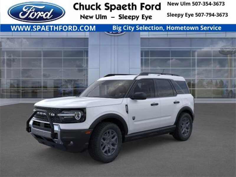 2025 Ford Bronco Sport Big Bend 1.5L EcoBoost Oxford White 110V/400W AC Power Outlet, 2nd Row Carpeted Seatback, Auxiliary Switches & Wiring, Black Diamond Off-Road Package, Brush Guard, Cargo Management System (Shelf/Divider/Table), Cargo Mat, Class II Trailer Tow Pack w/Trailer Sway Control, Convenience Package, Equipment Group 200A, Fender Tie Downs, Front & Rear Black Bumpers, Front Driver/Passenger Seat Back Map Pockets, Heated 8-Way Power Driver's Seat, Interior Grab Handle, LED Fog Lamps, Premium Wrapped Steering Wheel, Recovery Hooks, Universal Garage Door Opener (UGDO), Wheels 17'' Carbonized Gray Painted Aluminum. 25/30 City/Highway MPGIf you are interested in this or any of our vehicles, please contact us at one of our two locations, in Sleepy Eye 507-794-3673 or New Ulm 507-354-3673. Price includes $1000 - Mega Bonus Cash. Exp. 12/01/2025 $1500 - Retail Bonus Cash. Exp. 01/05/2026