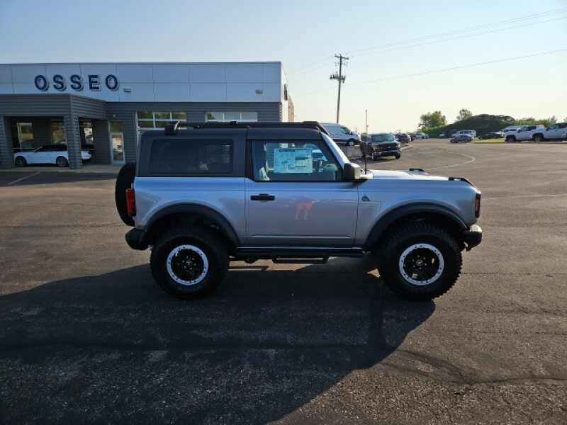 Osseo Ford is excited to offer this outstanding 2024 Ford Bronco Black Diamond in Iconic Silver Metallic, beautifully equipped with Equipment Group 322A Mid Package (2-Door Intelligent Access w/Lock/Unlock, Ambient Footwell Lighting, Auto-Dimming Interior Rear-View Mirror, Connected Navigation, Dr & Pass Illuminated Sliding Visor Vanity Mirrors, Dual Smart Charging USB Ports, Dual-Zone Electronic Automatic Temperature Control, Front Row Heated Seats, Power Outlet - Back Side of Center Floor Console, Rear Parking Sensors, and Remote Start System), Sasquatch Package (High Clearance Fender Flares, High Clearance Suspension, Position-Sensitive Bilstein Shock Absorbers, and Wheels 17 Black High Gloss-Painted Aluminum (765)), 4-Wheel Disc Brakes, 7 Speakers, ABS brakes, Air Conditioning, Alloy wheels, AM/FM radio SiriusXM with 360L, AM/FM Stereo, Auto High-Beam Headlamps, Auto High-beam Headlights, Black Roof Rails w/Crossbars, BLIS Blind Spot Information System, Brake assist, Compass, Convertible HardTop, Convertible roof lining, Delay-off headlights, Driver door bin, Driver vanity mirror, Dual front impact airbags, Dual front side impact airbags, Electronic Stability Control, Emergency communication system 911 Assist, Exterior Parking Camera Rear, Front & Rear Floor Liners, Front anti-roll bar, Front Bucket Seats, Front Center Armrest, Front License Plate Bracket, Front reading lights, Front wheel independent suspension, Fully automatic headlights, Glass rear window, Heated door mirrors, Illuminated entry, Integrated roll-over protection, Lane-Keeping System, Leather Shift Knob, Low tire pressure warning, Marine Grade Vinyl Bucket Seats, Occupant sensing airbag, Outside temperature display, Overhead airbag, Overhead console, Panic alarm, Passenger door bin, Passenger vanity mirror, Power door mirrors, Power steering, Power windows, Pre-Collision Assist w/Automatic Emergency Braking, Radio data system, Rear window defroster, Rear window wiper, Rear-View Camera, Remote keyless entry, Removable Hoop Step, Security system, SiriusXM Radio w/360L, Speed control, Split folding rear seat, Steering wheel mounted audio controls, SYNC 4, Tachometer, Telescoping steering wheel, Tilt steering wheel, Traction control, Trip computer, Variably intermittent wipers, and Wheels 17 Black High Gloss-Painted Aluminum! Iconic Silver Metallic 2024 Ford Bronco Black Diamond 4WD 10-Speed Automatic 2.7L EcoBoost V6 Price includes $2000 - Model Year Closeout Bonus Cash - Bronco 2DR/4DRSoft Top. Exp. 11/03/2025 $4500 - Model Year Closeout Bonus Cash - Bronco. Exp. 12/01/2025