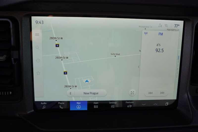 Front Powder-Coated Steel Bumper * Rear Powder-Coated Steel Bumper * Easy Fuel Capless Filler * Fender Tie-Down Hooks * Full Vehicle Steel Bash Plates * LED Signature Lighting * Heated/Power Glass Mirrors with Manual Fold * Tow Hooks - Front (2) / Rear (2) * One-Touch Up/Down Driver and Passenger Windows * 50/50 Split Fold Rear Seat * 6-Way Manual Driver and Passenger Seats * Auxiliary Switches with Pre-Wiring * Cruise Control * Digital Instrument Cluster * Locking Glove Box * Leather Gear Knob and Steering Wheel * MOLLE Strap System * 12V Powerpoints * Smart Charging USB Ports * Tilt/Telescoping Steering Column * 12 LCD Center Stack Touchscreen * Advanced 4x4 * Badlands Suspension * 4-Wheel Disc Brakes with ABS * FordPass Connect * Front and Rear Locking Differentials * Front Stabilizer Bar Disconnect * Hill Start Assist * Mid Package * Pre-Collision Assist with Automatic Emergency Braking * Push-Button Start * Rear View Camera * SiriusXM with 360L (Service Not Available in Alaska and Hawaii) * Terrain Management with G.O.A.T. Modes * Tool Kit for Door and Top Removal * AdvanceTrac with RSC * Dual-Stage Front Airbags * Side Impact and Safety Canopy System for All Rows * Belt-Minder Chime * Electronic Stability and Traction Control * Individual Tire Pressure Monitoring System * LATCH Child Safety System * Perimeter Alarm * Personal Safety System * 3-Year/36,000-Mile Bumper-to-Bumper Warranty * 5-Year/60,000-Mile Powertrain Warranty * 5-Year/60,000-Mile Roadside Assistance *