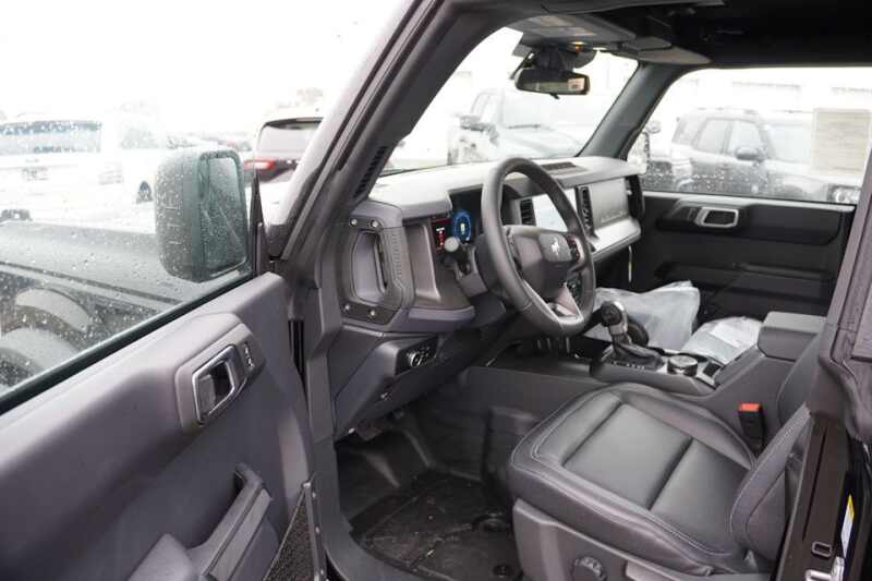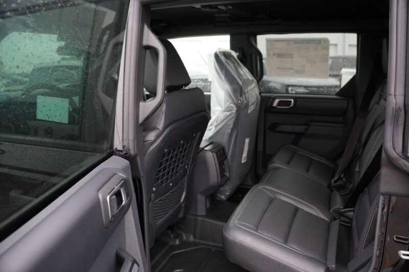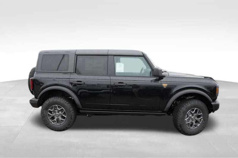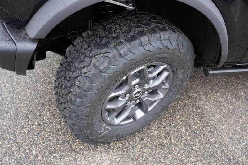 Front Powder Coated Steel Bumper * Rear Powder Coated Steel Bumper * Easy Fuel Capless Filler * Fender Tie-Down Hooks * Full Vehicle Steel Bash Plates * LED Signature Lighting * Heated Power Glass Mirrors, Manual Fold * Tow Hooks-Front (2)/Rear (2) * 1-Touch Up/Down Driver/Passenger Windows * 60/40 Split Fold Rear Seat * Auxiliary Switches with Pre-Wiring * Cruise Control * Digital Instrument Cluster * Locking Glove Box * Leather Gear Knob/Steering Wheel * MOLLE Strap System * 12V Powerpoints * Smart Charging USB Ports * Tilt/Telescoping Steering Column * 12 LCD Center Stack Touchscreen * Advanced 4x4 * Badlands Suspension * 4-Wheel Disc Brakes with ABS * FordPass Connect * Front/Rear Locking Differentials * Front Stabilizer Bar Disconnect * Hill Start Assist * Pre-Collision Assist with AEB * Push-Button Start * Rear View Camera * SiriusXM with 360L * Terrain Management with G.O.A.T. Modes * Tool Kit for Door/Top Removal * AdvanceTrac with RSC * Dual Stage Front Airbags * Side Impact/Safety Canopy System (All Rows) * Belt-Minder Chime * Child Safety Rear Door Locks * Electronic Stability/Traction Control * Individual Tire Pressure Monitoring System * LATCH Child Safety System * Perimeter Alarm * Personal Safety System * 3-Year/36,000 Mile Bumper-to-Bumper Warranty * 5-Year/60,000 Mile Powertrain Warranty * 5-Year/60,000 Mile Roadside Assistance *
