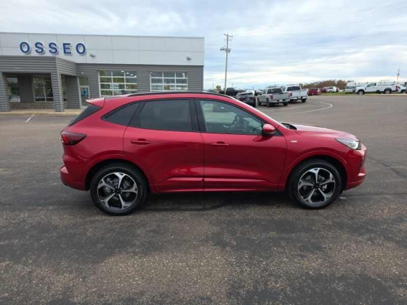 Osseo Ford is proud to offer this great 2026 Ford Escape ST-Line Elite in Rapid Red Metallic Tinted Clearcoat, beautifully equipped with Equipment Group 501A, Premium Technology Package (360-Degree Camera w/Split View, Front Parking Sensors, HD Radio, Head-Up Display, Heated ActiveX-Trimmed Front Sport Contour Seats, Radio B&O Sound System by Bang & Olufsen, and Reverse Brake Assist), AWD, 2.91 Axle Ratio, 4-Wheel Disc Brakes, 6 Speakers, ABS brakes, Air Conditioning, Alloy wheels, AM/FM radio SiriusXM, AM/FM Stereo, Auto High-beam Headlights, Auto-dimming Rear-View mirror, Automatic temperature control, Brake assist, Bumpers body-color, Compass, Delay-off headlights, Driver door bin, Driver vanity mirror, Dual front impact airbags, Dual front side impact airbags, Electronic Fuel Door Release, Electronic Stability Control, Emergency communication system SYNC 4 911 Assist, Ford App, Four wheel independent suspension, Front & Rear Floor Liners w/Carpet Mats, Front anti-roll bar, Front Bucket Seats, Front Center Armrest, Front dual zone A/C, Front fog lights, Front License Plate Bracket, Front reading lights, Fully automatic headlights, Heated door mirrors, Heated front seats, Heated steering wheel, Heated Vinyl/Cloth Front Sport Contour Bucket Seats, Illuminated entry, Knee airbag, Low tire pressure warning, Memory seat, Navigation system Connected Navigation, Neutral Towing Capability, Occupant sensing airbag, Outside temperature display, Overhead airbag, Overhead console, Panic alarm, Passenger door bin, Passenger vanity mirror, Pedestrian Alert Sounder, Power door mirrors, Power driver seat, Power Liftgate, Power passenger seat, Power steering, Power windows, Radio data system, Rear anti-roll bar, Rear reading lights, Rear seat center armrest, Rear window defroster, Rear window wiper, Remote keyless entry, Security system, Speed control, Speed-sensing steering, Speed-Sensitive Wipers, Split folding rear seat, Spoiler, Sport steering wheel, Steering wheel mounted audio controls, SYNC 4 w/Enhanced Voice Recognition, Tachometer, Telescoping steering wheel, Tilt steering wheel, Traction control, Trip computer, Variably intermittent wipers, and Wheels 19 Machined-Face Ebony-Painted Aluminum! Rapid Red Metallic Tinted Clearcoat 2026 Ford Escape ST-Line Elite AWD 8-Speed Automatic EcoBoost 2.0L I4 GTDi DOHC Turbocharged VCT AWD.