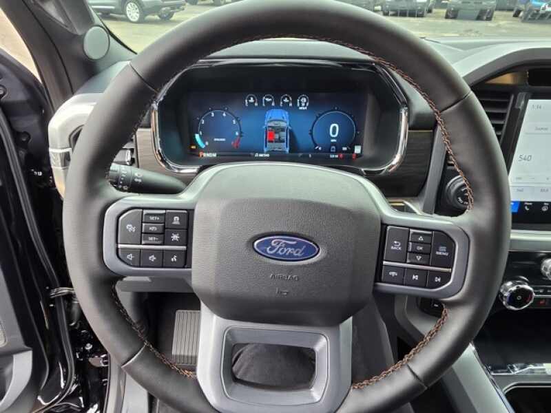 Osseo Ford is honored to offer this stout 2025 Ford F-150 Lariat in Agate Black Metallic, beautifully equipped with 3.5L PowerBoost Full-Hybrid V6, 4WD, 3.31 Axle Ratio, 4-Wheel Disc Brakes, 8 Speakers, ABS brakes, ActiveX Trimmed Bucket Seats, Adjustable pedals, Air Conditioning, Alloy wheels, AM/FM radio SiriusXM with 360L, Auto High-beam Headlights, Auto-dimming door mirrors, Auto-dimming Rear-View mirror, Automatic temperature control, Brake assist, Bumpers chrome, Chrome wheels, Compass, Delay-off headlights, Driver door bin, Driver vanity mirror, Dual front impact airbags, Dual front side impact airbags, Electronic Stability Control, Emergency communication system SYNC 4 911 Assist, Front anti-roll bar, Front Bucket Seats, Front Center Armrest, Front dual zone A/C, Front fog lights, Front reading lights, Front wheel independent suspension, Fully automatic headlights, Garage door transmitter, Heated door mirrors, Heated front seats, Heated steering wheel, Illuminated entry, Low tire pressure warning, Memory seat, Navigation system Connected Navigation, Occupant sensing airbag, Outside temperature display, Overhead airbag, Overhead console, Panic alarm, Passenger door bin, Passenger vanity mirror, Pedal memory, Power door mirrors, Power driver seat, Power passenger seat, Power steering, Power windows, Radio data system, Radio B&O Sound System by Bang & Olufsen, Rain sensing wipers, Rear reading lights, Rear seat center armrest, Rear step bumper, Rear window defroster, Remote keyless entry, Security system, Speed control, Split folding rear seat, Steering wheel mounted audio controls, SYNC 4 w/Enhanced Voice Recognition, Tachometer, Telescoping steering wheel, Tilt steering wheel, Traction control, Trip computer, Turn signal indicator mirrors, Variably intermittent wipers, Ventilated front seats, Voltmeter, and Wheels 18 Chrome-Like PVD! Agate Black Metallic 2025 Ford F-150 Lariat 4WD 10-Speed Automatic 3.5L PowerBoost Full-Hybrid V6 3.5L PowerBoost Full-Hybrid V6, 4WD.
