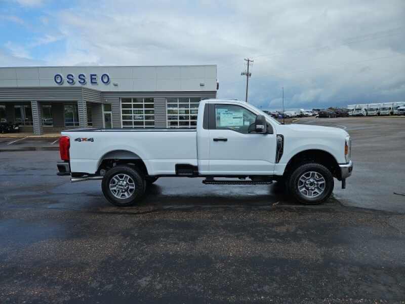 Osseo Ford is pumped up to offer this rock solid 2025 Ford F-350SD XLT in Oxford White, beautifully equipped with GVWR 10,900 lb Payload Package, Snow Plow Prep Package, 4WD, 190 Amp Alternator, 250 Amp Alternator (Gas), 4 Speakers, 4-Wheel Disc Brakes, ABS brakes, Air Conditioning, AM/FM radio, AM/FM Stereo w/MP3 Player, Brake assist, Cloth 40/20/40 Split Bench Seat, Compass, Delay-off headlights, Dual front impact airbags, Dual front side impact airbags, Electronic Stability Control, Emergency communication system SYNC 4 911 Assist, Exterior Parking Camera Rear, Front anti-roll bar, Front Center Armrest w/Storage, Front License Plate Bracket, Front reading lights, Fully automatic headlights, Heated door mirrors, Illuminated entry, LED Roof Clearance Lights, Low tire pressure warning, Outside temperature display, Overhead airbag, Overhead console, Panic alarm, Passenger cancellable airbag, Passenger vanity mirror, Platform Running Boards, Power door mirrors, Power steering, Power windows, Rear step bumper, Remote keyless entry, Security system, Speed control, Steering wheel mounted audio controls, SYNC 4, Tachometer, Telescoping steering wheel, Tilt steering wheel, Traction control, Trip computer, Turn signal indicator mirrors, and Variably intermittent wipers! Oxford White 2025 Ford F-350SD XLT 4WD 10-Speed Automatic 7.3L V8 PFI SOHC 16V Federal 405hp 4WD. Price includes $1500 - Retail Customer Cash. Exp. 01/05/2026 $2000 - Retail Customer Cash. Exp. 01/05/2026