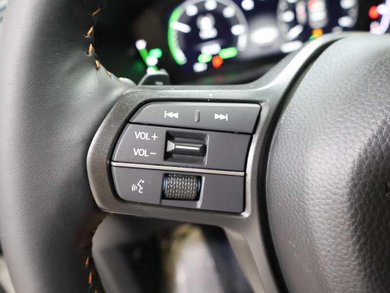 This Honda CR-V Hybrid is well equipped with these key features and benefits, 2.0L I4 DOHC 16V, 8 Speakers, ABS brakes, Active Cruise Control, Alloy wheels, Blind Spot Information (BSI) System warning, Compass, Electronic Stability Control, Front dual zone A/C, Heated door mirrors, Heated Front Bucket Seats, Heated front seats, Heated steering wheel, Illuminated entry, Low tire pressure warning, Power moonroof, Remote keyless entry, Traction control.