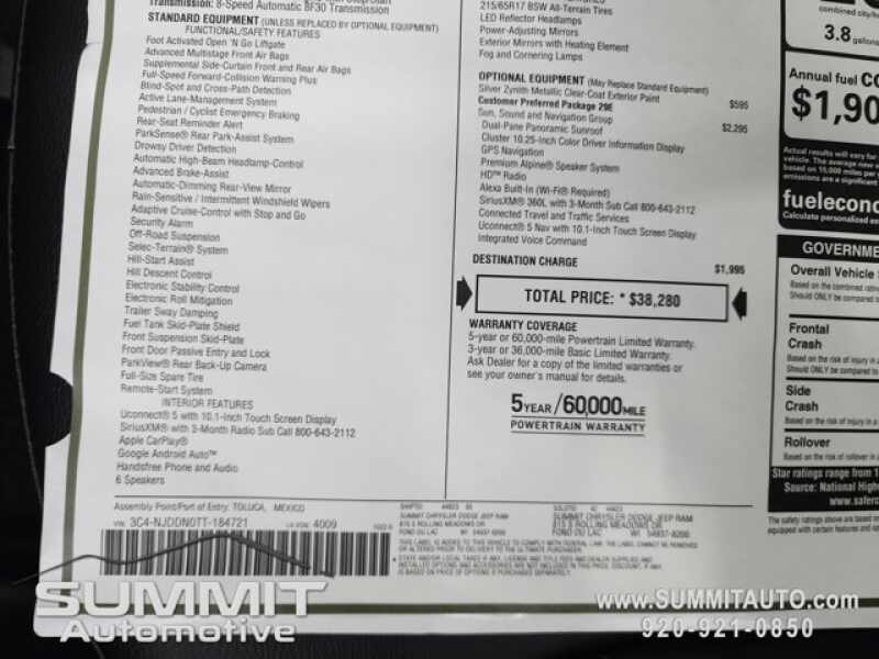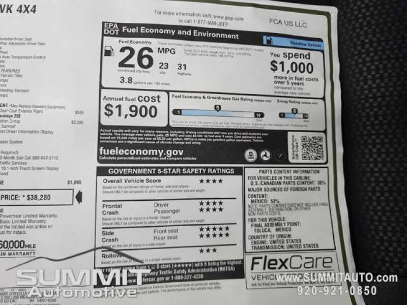 CLEAR PRICING. The pricing posted above is for everyone. TALK TO A SALESPERSON FOR YOUR PERSONALIZED PRICING. WE WILL SEARCH FOR THE LOWEST POSSIBLE PRICE AND HELP MAKE YOUR DECISION EASY. WE PAY TOP DOLLAR FOR ALL TRADES. We are WISCONSINS volume CHRYSLER, DODGE, JEEP, RAM dealer serving Fond du Lac, Sheboygan, Waupun, Oshkosh, Appleton, West Bend, Beaver Dam, Milwaukee, Madison and surrounding areas. We ship anywhere in the UNITED STATES.CALL NOW! 1-920-921-0850 !! Check out our Full inventory at www.SUMMITAUTO.com ! Summit Chrysler Dodge Jeep Ram in Fond du Lac, Wisconsin is a family owned and operated dealership since 1959. We take great pride in our new and used car and truck center with vehicles to fit everyones budget. We have ON THE SPOT FINANCING. BAD CREDIT OR GOOD CREDIT, we work with over 20 banks to get you APPROVED AT THE MOST COMPETITIVE RATES. We provide AIRPORT TRANSPORTATION and NATIONWIDE DELIVERY OPTIONS. We are conveniently located on HWY 41 at EXIT 98, Hwy 151 at Military Rd. Exit