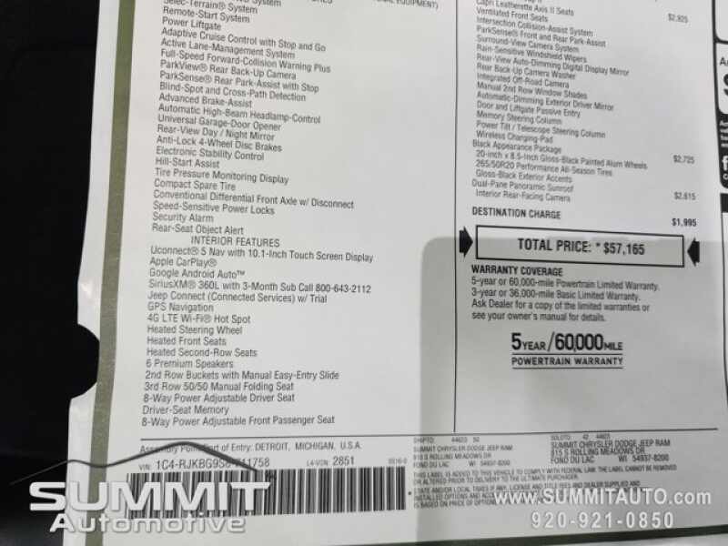 Call Now! 1-(920)-921-0850 . Check out our Full inventory at www.SUMMITAUTO.com ! Summit Automotive Chrysler Dodge Jeep Ram in Fond du Lac, Wisconsin also Proudly Serving Oshkosh, Madison, Milwaukee, Sheboygan, Appleton, and Waupun is a family owned and operated dealership since 1959. We take great pride in our new and used car and truck center with vehicles to fit everyone's budget. We have ON THE SPOT FINANCING. BAD CREDIT OR GOOD CREDIT, we work with over 20 lenders to get you APPROVED AT THE MOST COMPETITIVE RATES. We provide AIRPORT TRANSPORTATION and NATIONWIDE DELIVERY OPTIONS. We are conveniently located on HWY 41 at EXIT 98, Hwy 151 at Military Rd. Exit . Just Look For The TRUCKS ON 41. Advertised price does not include, tax, title, registration and service fee.