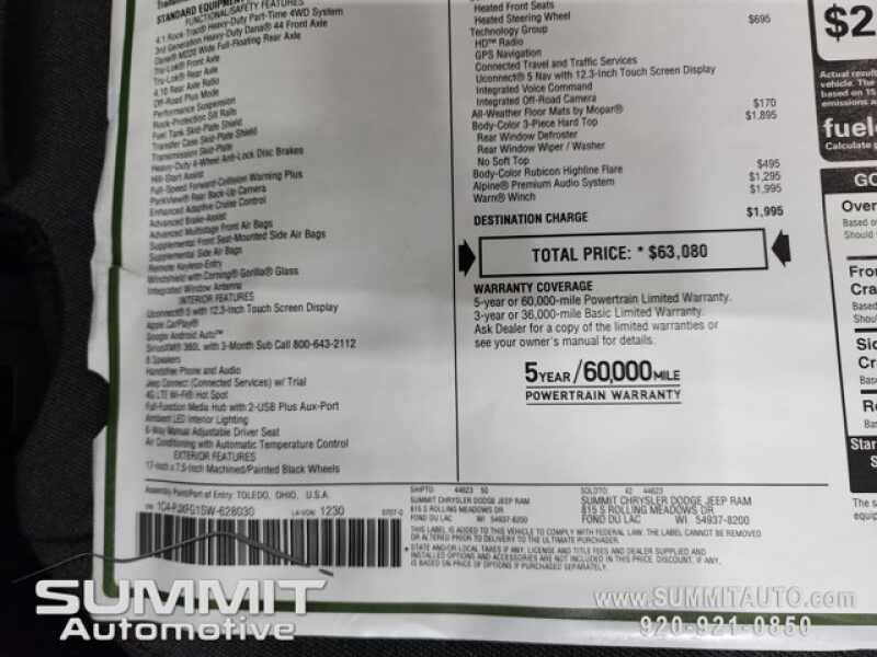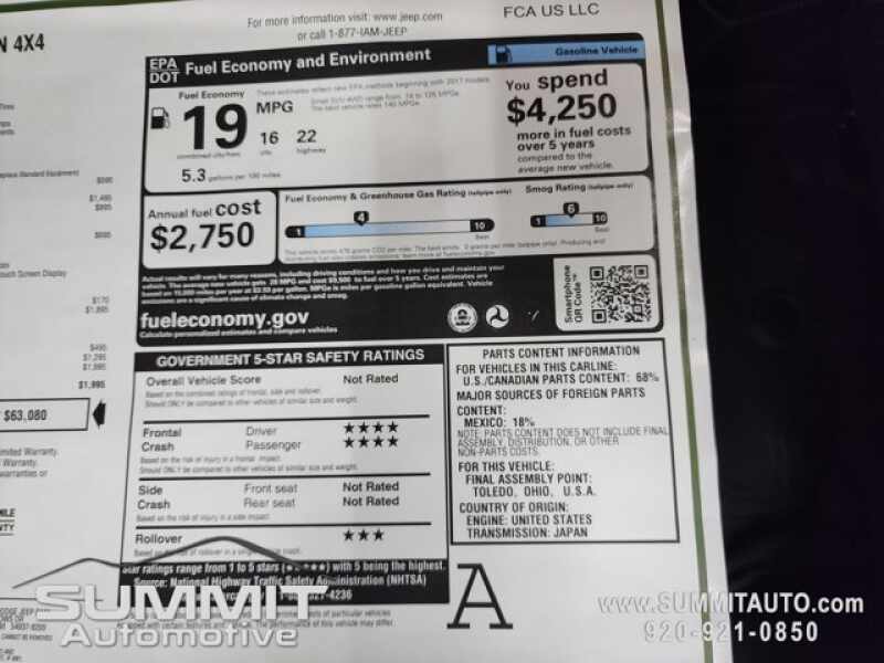 Call Now! 1-(920)-921-0850 . Check out our Full inventory at www.SUMMITAUTO.com ! Summit Automotive Chrysler Dodge Jeep Ram in Fond du Lac, Wisconsin also Proudly Serving Oshkosh, Madison, Milwaukee, Sheboygan, Appleton, and Waupun is a family owned and operated dealership since 1959. We take great pride in our new and used car and truck center with vehicles to fit everyone's budget. We have ON THE SPOT FINANCING. BAD CREDIT OR GOOD CREDIT, we work with over 20 lenders to get you APPROVED AT THE MOST COMPETITIVE RATES. We provide AIRPORT TRANSPORTATION and NATIONWIDE DELIVERY OPTIONS. We are conveniently located on HWY 41 at EXIT 98, Hwy 151 at Military Rd. Exit . Just Look For The TRUCKS ON 41. Advertised price does not include, tax, title, registration and service fee.