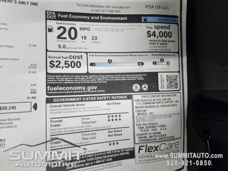 * Call Now! 1-(920)-921-0850 . Check out our Full inventory at www.SUMMITAUTO.com ! Summit Automotive Chrysler Dodge Jeep Ram in Fond du Lac, Wisconsin also Proudly Serving Oshkosh, Madison, Milwaukee, Sheboygan, Appleton, and Waupun is a family owned and operated dealership since 1959. We take great pride in our new and used car and truck center with vehicles to fit everyone's budget. We have ON THE SPOT FINANCING. BAD CREDIT OR GOOD CREDIT, we work with over 20 lenders to get you APPROVED AT THE MOST COMPETITIVE RATES. We provide AIRPORT TRANSPORTATION and NATIONWIDE DELIVERY OPTIONS. We are conveniently located on HWY 41 at EXIT 98, Hwy 151 at Military Rd. Exit . Just Look For The TRUCKS ON 41. Advertised price does not include, tax, title, registration and service fee.