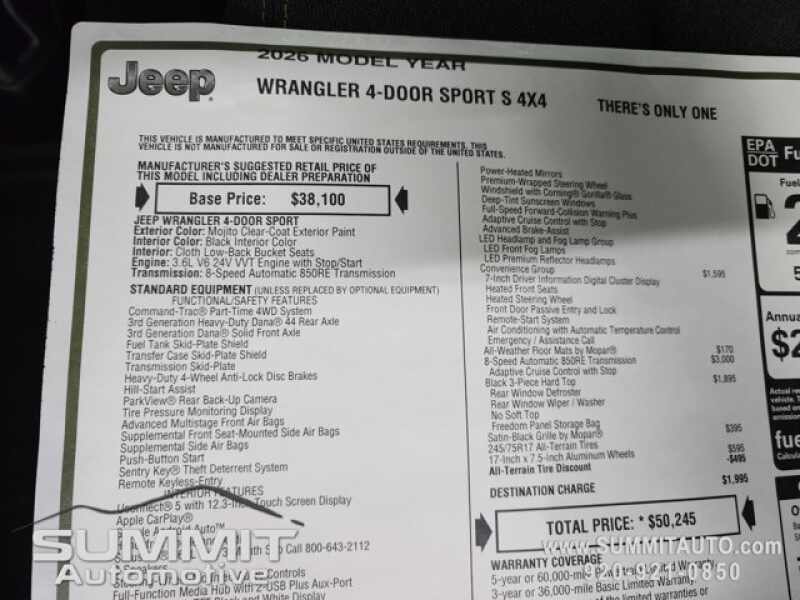 New 2026 Jeep Wrangler Sport S