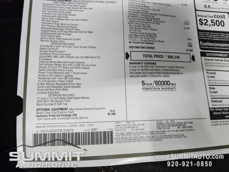 - VIN 1C4PJXDG0TW205878