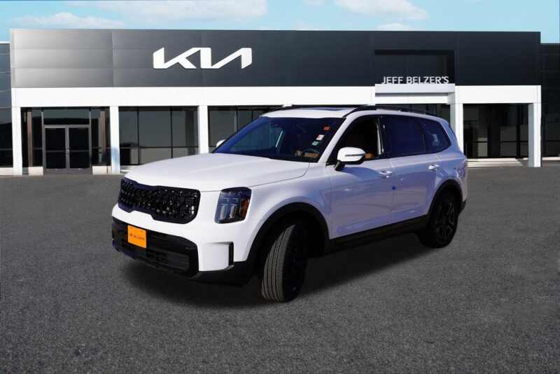 * 2025 Kia Telluride EX X Line V6 AWD Glacial White Pearl with Terracotta Interior Color Package * * Optional Equipment 20 inch Black Finished Alloy Wheels * X Line Exterior Styling * Black Exterior Emblems * 2nd Row Captain's Chairs * Self Leveling Rear Suspension * Tow Mode * Glacial White Pearl Paint * Carpeted Floor Mats * Tow Hitch * Standard Features 3.8L Gas Direct Injection V6 Engine * 8 Speed Automatic Transmission * Active On Demand All Wheel Drive * Forward Collision Avoidance Assist Cyclist Jct Turning * Blind Spot Collision Warning * Rear Cross Traffic Collision Avoidance Assist * Lane Keeping Assist and Lane Following Assist * Safe Exit Assist and Highway Driving Assist * Parking Distance Warning Reverse * Smart Cruise Control with Stop and Go * Dual Front Driver's Knee Full Length Side Curtain Airbags * 1st and 2nd Row Outboard Seat Mounted Side Airbags * Electronic Stability Control * Downhill Brake Control and Hill Start Assist Control * 12.3 inch Touchscreen Display with Navigation * Android Auto and Apple CarPlay * Kia Connect with Comp 3 Yr Ultimate Where Available * SIRIUSXM with Free 3 Mo Subscription * Smart Key with Push Button and Remote Start * Wireless Phone Charger * Front Rear Automatic Climate Control * Leather Seat Trim * Heated and Ventilated Power Adjustable Front Seats * 2nd Row Sunshades * Heated Leather Wrapped Steering Wheel * Rear Occupant Alert with Sensors * 20 inch Alloy Wheels * Power Sunroof * Smart Power Liftgate * LED Projector Headlights and Tail Lights * Power Folding Heated Outside Mirrors with Turn Signals * Roof Rails and Rear Privacy Glass * 10 Year 100,000 Mile Limited Powertrain Warranty * 5 Year 60,000 Mile Limited Basic Warranty * 5 Year 60,000 Mile Roadside Assistance *