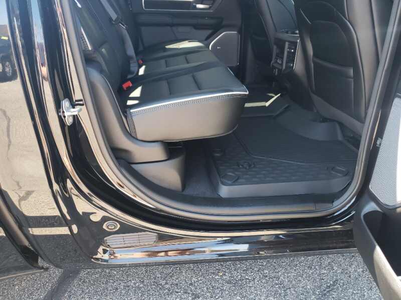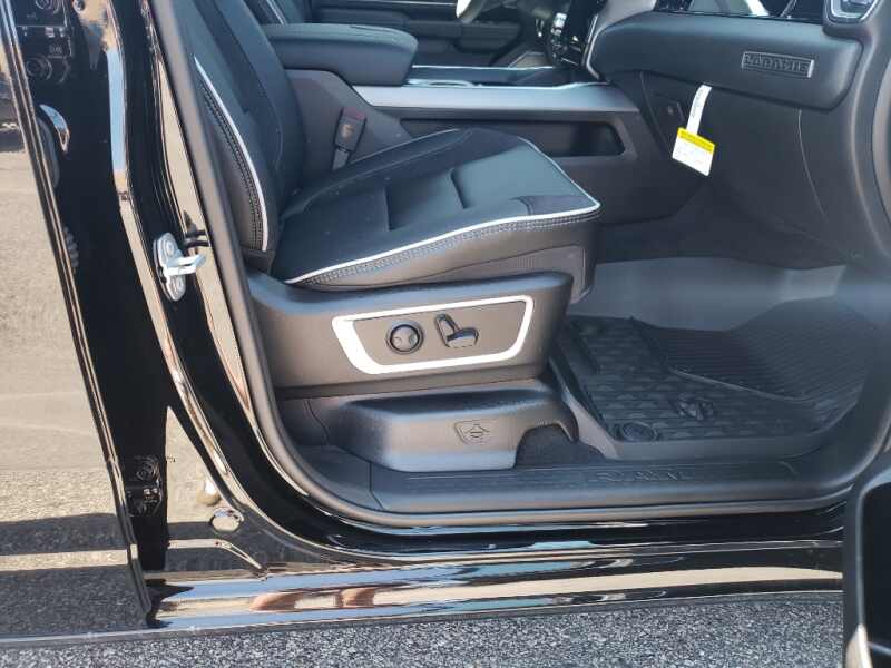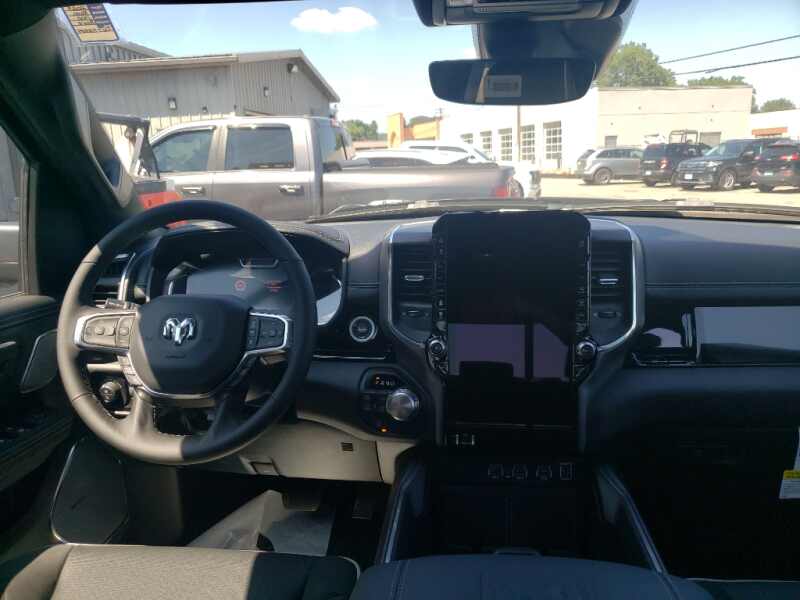 Laramie Level 2 Equipment Group Google Android Auto USB Host Flip HD Radio Rain Sensitive Windshield Wipers Smartphone as a Key Capable 14.4 Touchscreen Display Dual Wireless Charging Pad Front Passenger Interactive Display Integrated Voice Command with Bluetooth Connectivity - US/Canada Uconnect 5 Nav with 14.4 Display GPS Navigation 4G LTE Wi-Fi Hot Spot GPS Antenna Input Harman/kardon 19 Speaker Premium Sound SiriusXM with 360L Connected Travel and Traffic Services Cluster 12 TFT Color Display Power Tailgate Apple CarPlay. Quick Order Package 21H Laramie. Night Edition Black Headlamp Bezels Auto Power-Folding Mirrors 22 X 9 Forged Aluminum Wheels Exterior Mirrors with Heating Element Proximity Approach/departure Lamps Auto Dim Exterior Driver Mirror Anti-Spin Differential Rear Axle Accent Color Door Handles Black Interior Accents Body Color Front Bumper Grille Surround 3 Black Texture 2 Black Body Color Rear Bumper with Step Pads RAM Grille Badge - Black Black Painted Exterior Mirrors Caps Exterior Mirrors Approach Lamps Leather Trimmed Bucket Seats Accent Color Premium Power Mirrors Exterior Mirrors with Supplemental Signals Sport Performance Hood Exterior Mirrors Courtesy Lamps Black Exterior Truck Badging Accent Color Tailgate Handle Exterior Mirrors with Memory Dual Exhaust with Black Tips Convex Wide-Angle Exterior Mirror Insert Black Tail Lamp Bezels. 22 X 9 Forged Aluminum Wheels. Leather Trimmed Bucket Seats. Anti-Spin Differential Rear Axle. Trailer Brake Control. Diamond Black Crystal PC. MOPAR Front and Rear Rubber Floor Mats. 3.92 Rear Axle Ratio. **Equipment listed is based on original vehicle build and subject to change. Please confirm the accuracy of the included equipment by calling the dealer prior to purchase.**