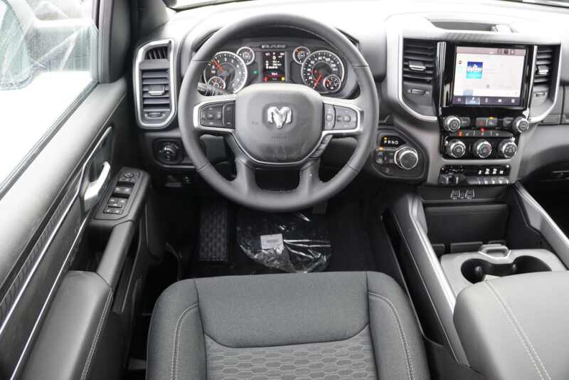 Advanced Multistage Front Air Bags * Supplemental Front Seat Mounted Side Air Bags * Supplemental Side Curtain Front and Rear Air Bags * Advanced Brake Assist * 3.21 Rear Axle Ratio * Electronic Shift On Demand Transfer Case * Sentry Key Theft Deterrent System * Anti Lock 4 Wheel Disc Brakes * Electric Parking Brake * Electronic Roll Mitigation * Electronic Stability Control * Front Heavy Duty Shock Absorbers * Rear Heavy Duty Shock Absorbers * Active Lane Management System * Adaptive Cruise Control with Stop and Go * Automatic High Beam Headlamp Control * Blind Spot and Cross Path Detection * Full Speed Forward Collision Warning Plus * Hill Start Assist * ParkSense Front and Rear Park Assist * ParkView Rear Back Up Camera * Pedestrian Emergency Braking * Remote Keyless Entry * Remote Start System * Push Button Start * Class IV Receiver Hitch * Trailer Sway Damping * 26 Gallon Fuel Tank * 4 Way Manual Adjustable Driver Seat * 4 Way Manual Adjustable Front Passenger Seat * Uconnect 5 with 8.4 Inch Touch Screen Display * Handsfree Phone and Audio * Ram Connect Connected Services with Trial * 4G LTE Wi Fi Hot Spot * Cluster with 3.5 Inch TFT Color Display * 6 Speakers * Full Function Media Hub with 2 USB Plus Aux Port * 12 Volt Auxiliary Power Outlet * 18 Inch x 8.0 Inch Cast Aluminum Painted Wheels * 275/65R18 BSW All Season LRR Tires * 18 Inch Full Size Steel Spare Wheel * Black Power Mirrors * Automatic Headlamps * LED Low High Reflector Headlamps * LED Front Fog Lamps *