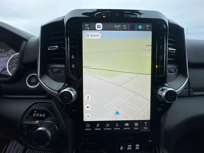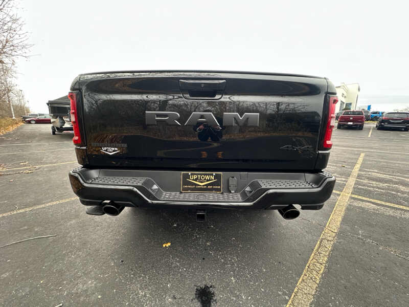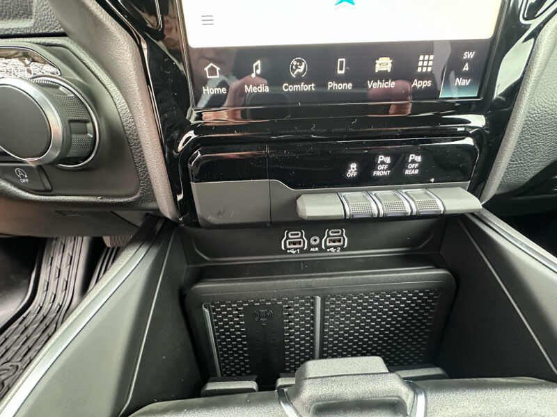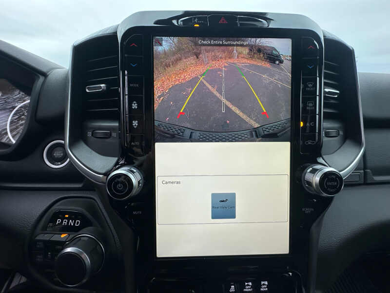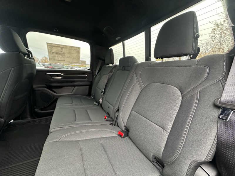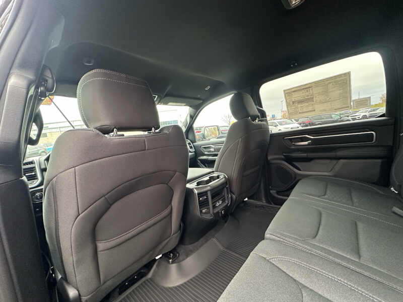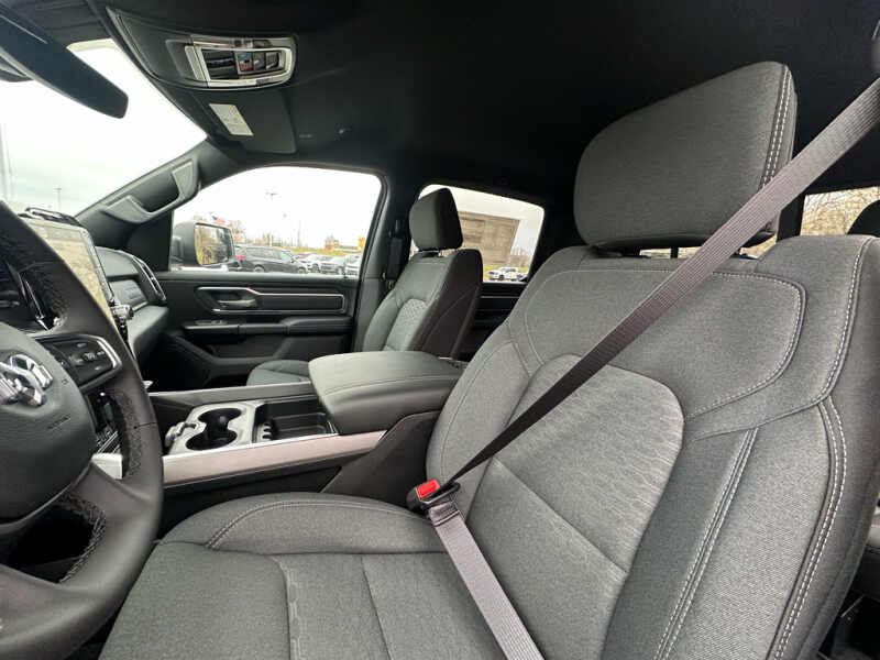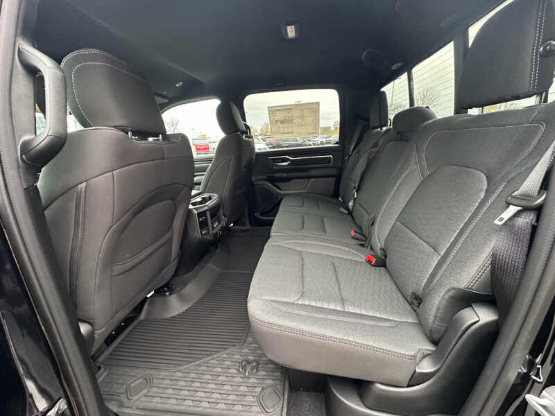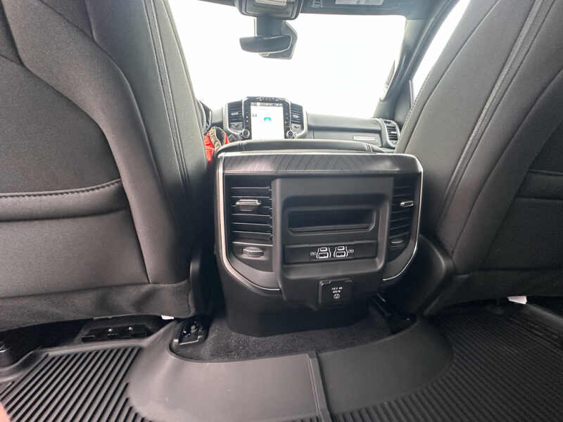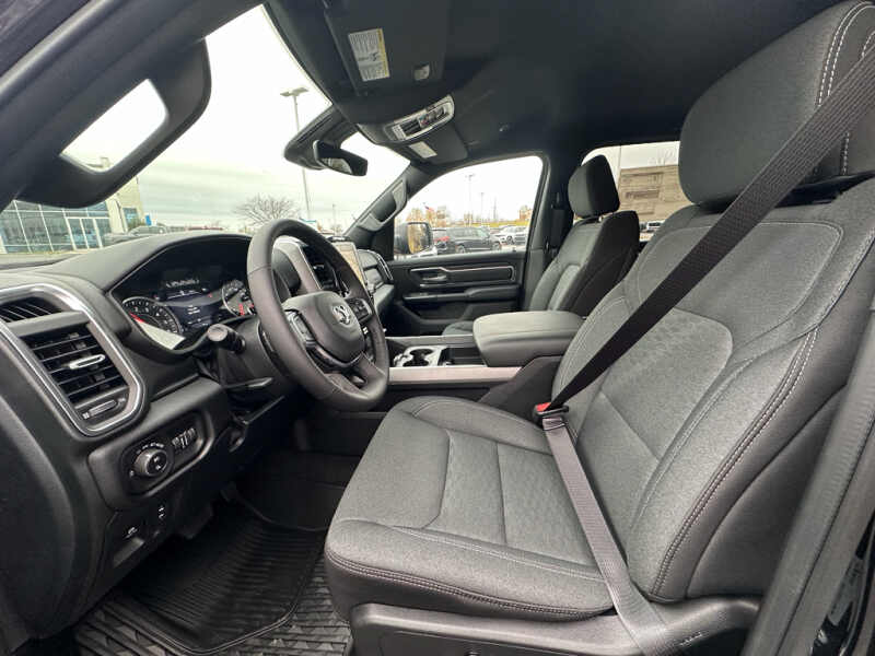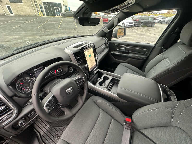 Quick Order Package 27Z Big Horn. Big Horn Level 2 Equipment Group Google Android Auto SiriusXM Radio Service USB Host Flip Power Adjustable Pedals Leather Wrapped Steering Wheel Integrated Voice Command with Bluetooth 12 Touchscreen Display Glove Box Lamp Auto Power-Folding Mirrors 115V Auxiliary Rear Power Outlet Media Hub with 2 Charge Only USBs Heated Front Seats Security Alarm Black Premium Power Mirrors Apple CarPlay Premium Overhead Console 9 Amplified Speakers with Subwoofer Disassociated Touchscreen Display Body Color Fender Flares Remote Tailgate Release 115V Auxiliary Power Outlet LED Dome Lamp with On/off Switch Universal Garage Door Opener 2nd Row in Floor Storage Bins Sun Visors with Illuminated Vanity Mirrors LED Footwell Lighting Rear Window Defroster Integrated Center Stack Radio Rear View Auto Dim Mirror Rear Power Sliding Window Connectivity - US/Canada GPS Navigation 4G LTE Wi-Fi Hot Spot GPS Antenna Input Overhead LED Lamps Exterior Mirrors with Heating Element Auto Dim Exterior Driver Mirror SiriusXM with 360L Global Telematics Box Module Connected Travel and Traffic Services Heated Steering Wheel Configurable Drive Mode 400W Inverter HD Radio Deluxe Cloth Bucket Seats Uconnect 5 Navigation with 12.0 Display Radio Exterior Mirrors with Supplemental Signals Steering Wheel Mounted Audio Controls Exterior Mirrors Courtesy Lamps Air Conditioning ATC with Dual Zone Control Cluster 7.0 TFT Color Display Convex Wide-Angle Exterior Mirror Insert. Night Edition 275/55R20 OWL All Season Tires Accent Color Premium Power Mirrors Exterior Mirrors with Supplemental Signals Black Headlamp Bezels Exterior Mirrors Courtesy Lamps Grille Black Surround Black Mesh Auto Power-Folding Mirrors Exterior Mirrors with Heating Element 20 X 9.0 Aluminum Painted Clad Wheels Auto Dim Exterior Driver Mirror Black Exterior Truck Badging Anti-Spin Differential Rear Axle Accent Color Door Handles Accent Color Tailgate Handle Black Interior Accents Dual Exhaust with Black Tips Body Color Front Bumper Convex Wide-Angle Exterior Mirror Insert Body Color Rear Bumper with Step Pads Black Tail Lamp Bezels RAM Grille Badge - Black Black Painted Exterior Mirrors Caps. Bed Utility Group MOPAR Spray in Bedliner MOPAR Deployable Bed Step MOPAR 4 Adjustable Cargo Tie-Down Hooks Pick-Up Box Lighting Exterior 115V AC Outlet. Quick Order Package 23Z Big Horn. 9 Amplified Speakers with Subwoofer. MOPAR Black Tubular Side Steps. Anti-Spin Differential Rear Axle. Diamond Black Crystal PC. Rear Underseat Compartment Storage. MOPAR Front and Rear Rubber Floor Mats. 3.92 Rear Axle Ratio. Rear Wheelhouse Liners. **Equipment listed is based on original vehicle build and subject to change. Please confirm the accuracy of the included equipment by calling the dealer prior to purchase.**