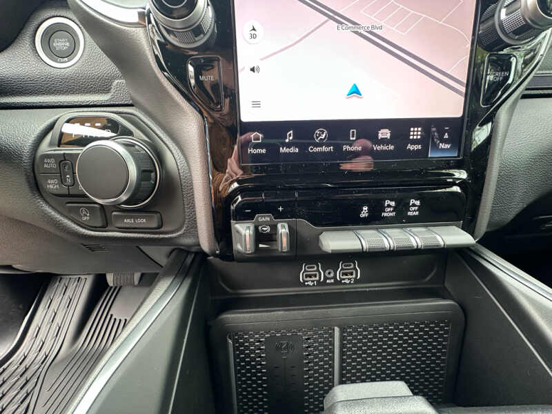 - Big Horn Level 2 Equipment Group Google Android Auto SiriusXM Radio Service USB Host Flip Power Adjustable Pedals Leather Wrapped Steering Wheel Integrated Voice Command with Bluetooth 12 Touchscreen Display Glove Box Lamp Auto Power-Folding Mirrors 115V Auxiliary Rear Power Outlet Media Hub with 2 Charge Only USBs Heated Front Seats Security Alarm Black Premium Power Mirrors Apple CarPlay Premium Overhead Console 9 Amplified Speakers with Subwoofer Disassociated Touchscreen Display Body Color Fender Flares Remote Tailgate Release 115V Auxiliary Power Outlet LED Dome Lamp with On/off Switch Universal Garage Door Opener 2nd Row in Floor Storage Bins Sun Visors with Illuminated Vanity Mirrors LED Footwell Lighting Rear Window Defroster Integrated Center Stack Radio Rear View Auto Dim Mirror Rear Power Sliding Window Connectivity - US/Canada GPS Navigation 4G LTE Wi-Fi Hot Spot GPS Antenna Input Overhead LED Lamps Exterior Mirrors with Heating Element Auto Dim Exterior Driver Mirror SiriusXM with 360L Global Telematics Box Module Connected Travel and Traffic Services Heated Steering Wheel Configurable Drive Mode 400W Inverter HD Radio Deluxe Cloth Bucket Seats Uconnect 5 Navigation with 12.0 Display Radio Exterior Mirrors with Supplemental Signals Steering Wheel Mounted Audio Controls Exterior Mirrors Courtesy Lamps Air Conditioning ATC with Dual Zone Control Cluster 7.0 TFT Color Display Convex Wide-Angle Exterior Mirror Insert