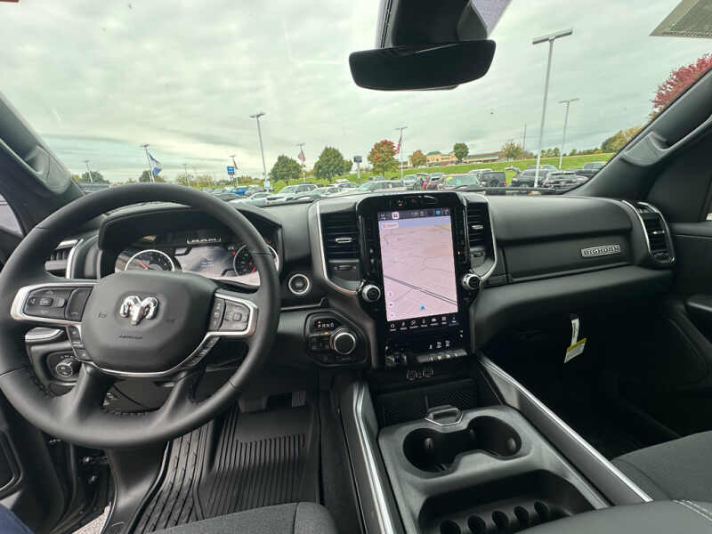 Quick Order Package 27Z Big Horn. Big Horn Level 2 Equipment Group Google Android Auto SiriusXM Radio Service USB Host Flip Power Adjustable Pedals Leather Wrapped Steering Wheel Integrated Voice Command with Bluetooth 12 Touchscreen Display Glove Box Lamp Auto Power-Folding Mirrors 115V Auxiliary Rear Power Outlet Media Hub with 2 Charge Only USBs Heated Front Seats Security Alarm Black Premium Power Mirrors Apple CarPlay Premium Overhead Console 9 Amplified Speakers with Subwoofer Disassociated Touchscreen Display Body Color Fender Flares Remote Tailgate Release 115V Auxiliary Power Outlet LED Dome Lamp with On/off Switch Universal Garage Door Opener 2nd Row in Floor Storage Bins Sun Visors with Illuminated Vanity Mirrors LED Footwell Lighting Rear Window Defroster Integrated Center Stack Radio Rear View Auto Dim Mirror Rear Power Sliding Window Connectivity - US/Canada GPS Navigation 4G LTE Wi-Fi Hot Spot GPS Antenna Input Overhead LED Lamps Exterior Mirrors with Heating Element Auto Dim Exterior Driver Mirror SiriusXM with 360L Global Telematics Box Module Connected Travel and Traffic Services Heated Steering Wheel Configurable Drive Mode 400W Inverter HD Radio Deluxe Cloth Bucket Seats Uconnect 5 Navigation with 12.0 Display Radio Exterior Mirrors with Supplemental Signals Steering Wheel Mounted Audio Controls Exterior Mirrors Courtesy Lamps Air Conditioning ATC with Dual Zone Control Cluster 7.0 TFT Color Display Convex Wide-Angle Exterior Mirror Insert. Night Edition. Quick Order Package 23Z Big Horn. 9 Amplified Speakers with Subwoofer. E-Locker Rear Axle. 33 Gallon Fuel Tank. Trailer Brake Control. Forged Blue Metallic. MyFlexCare Service Plan. MOPAR Front and Rear Rubber Floor Mats. 3.92 Rear Axle Ratio. **Equipment listed is based on original vehicle build and subject to change. Please confirm the accuracy of the included equipment by calling the dealer prior to purchase.**