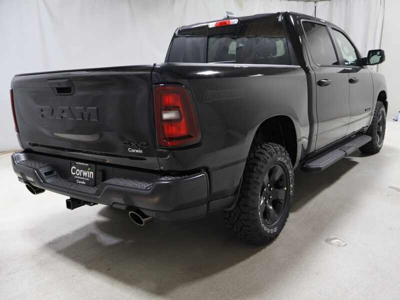 115V Auxiliary Power Outlet, 2nd Row In Floor Storage Bins, 400W Inverter, ABS brakes, Active Cruise Control, Cloth Bench Seat, Cluster 7.0 TFT Color Display, Compass, E-Locker Rear Axle, Electronic Stability Control, Front & Rear Floor Mats, Front LED Fog Lamps, Front Performance Tuned Shock Absorbers, Heated door mirrors, Illuminated entry, Low tire pressure warning, Manual Folding Exterior Mirrors, MOPAR Front & Rear Rubber Floor Mats, ParkView Rear Back-Up Camera, Quick Order Package 21B Warlock, Raised Ride Height, Rear Performance Tuned Shock Absorbers, Rear Power Sliding Window, Remote keyless entry, Selec-Speed Control, SiriusXM Radio Service, SiriusXM Satellite Radio, Tow Hooks, Traction control, Tradesman Level 1 Equipment Group, Warlock Decal, Wheels 18 x 8.0 Black Painted Aluminum.