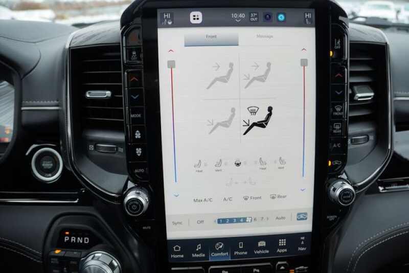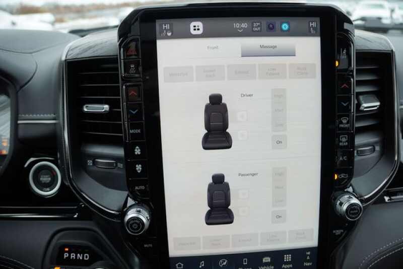Advanced Multistage Front Air Bags * Supplemental Front Seat Mounted Side Air Bags * Supplemental Side Curtain Front and Rear Air Bags * ParkView Rear Back Up Camera * Active Driving Assist System * Active Lane Management System * Adaptive Cruise Control with Stop and Go * Blind Spot and Cross Path Detection * Full Speed Forward Collision Warning Plus * ParkSense Front and Rear Park Assist * Pedestrian Emergency Braking * Remote Start System * 4 Corner Air Suspension * Power Tailgate * 3.92 Rear Axle Ratio * Rain Sensitive Windshield Wipers * Active Noise Control System * Class IV Receiver Hitch * 33 Gallon Fuel Tank * Massaging Driver Seat * Massaging Front Passenger Seat * Heated Front Seats * Ventilated Front Seats * Heated Second Row Seats * Ventilated Rear Seats * Power Adjustable Pedals with Memory * Uconnect 5 Nav with 12.0 Inch Touch Screen Display * Ram Connect (Connected Services) with Trial * SiriusXM 360L with 3 Month Sub Call 800 643 2112 * Cluster with 12 Inch TFT Color Display * Front Passenger Interactive Display * Dual Wireless Charging Pad * 19 Speaker Harman Kardon Premium Sound * Wood / Leather Wrapped Steering Wheel * Heated Steering Wheel * A/C with Dual Zone Auto Temperature Control * 2nd Row In Floor Storage Bins * 20 Inch x 9.0 Inch Premium Painted/Polished Wheels * 275/55R20 OWL All Season Tires * Bi Function LED Projector Headlamps * Automatic High Beam Headlamp Control * LED Front Fog Lamps * LED Tail Lamps * Proximity Approach / Departure Lamps * Power Deployable Running Boards * Tow Hooks *