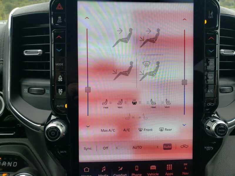 - Laramie Level 2 Equipment Group Google Android Auto SiriusXM Radio Service USB Host Flip Rain Sensitive Windshield Wipers Integrated Center Stack Radio Front Passenger Interactive Display Integrated Voice Command with Bluetooth Connectivity - US/Canada GPS Navigation 4G LTE Wi-Fi Hot Spot GPS Antenna Input SiriusXM with 360L Global Telematics Box Module Connected Travel and Traffic Services Apple CarPlay Disassociated Touchscreen Display Secondary Active Grille Shutters HD Radio Smartphone as a Key Capable 14.4 Touchscreen Display Dual Wireless Charging Pad Uconnect 5 Nav with 14.4 Display Harman/kardon 19 Speaker Premium Sound Cluster 12 TFT Color Display Power Tailgate