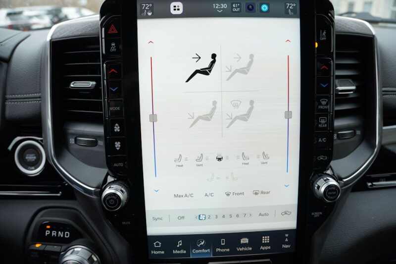 Advanced Multistage Front Air Bags * Supplemental Front Seat Mounted Side Air Bags * Supplemental Side Curtain Front and Rear Air Bags * Advanced Brake Assist * Electronic Shift On Demand Transfer Case * 3.55 Rear Axle Ratio * Active Lane Management System * Active Noise Control System * Adaptive Cruise Control with Stop and Go * Blind Spot and Cross Path Detection * Full Speed Forward Collision Warning Plus * ParkSense Front and Rear Park Assist * ParkView Rear Back Up Camera * Pedestrian Emergency Braking * Configurable Drive Mode * Class IV Receiver Hitch * Push Button Start * Remote Start System * Dampened Tailgate * 26-Gallon Fuel Tank * 8-Way Power Adjustable Driver Seat * 8-Way Power Adjustable Front Passenger Seat * Radio / Driver Seat / Mirrors / Pedals Memory * Heated Front Seats * Ventilated Front Seats * Rear 60/40 Split Folding / Reclining Seat * Heated Second-Row Seats * Uconnect 5 Nav with 12.0-Inch Touch Screen Display * SiriusXM 360L with 3-Month Sub Call 800-643-2112 * Ram Connect (Connected Services) with Trial * Cluster with 7.0-Inch TFT Color Display * Leather Wrapped Steering Wheel * Heated Steering Wheel * Power Adjustable Pedals with Memory * 9 Amplified Speakers with Subwoofer * A/C with Dual Zone Auto Temperature Control * 2nd-Row In-Floor Storage Bins * Rear Under-Seat Storage Compartment * 20-Inch x 9.0-Inch Premium Painted/Polished Wheels * 275/55R20 All Season LRR Tires * 18-Inch Full-Size Steel Spare Wheel *