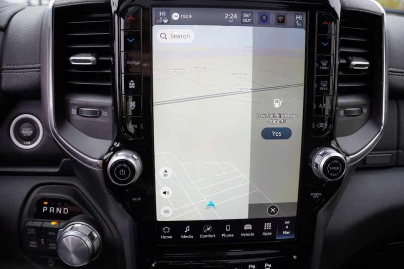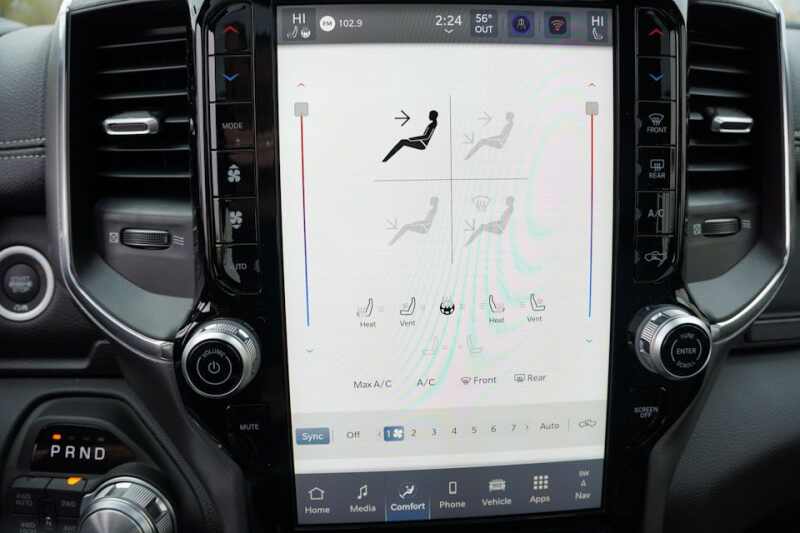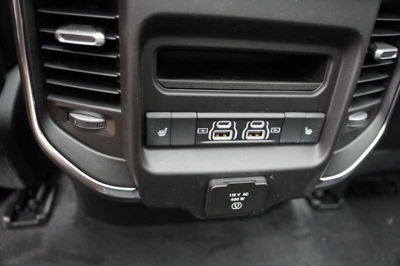 Advanced Multistage Front Air Bags * Supplemental Front Seat Mounted Side Air Bags * Supplemental Side Curtain Front and Rear Air Bags * Advanced Brake Assist * Electronic Shift On Demand Transfer Case * 3.55 Rear Axle Ratio * Active Lane Management System * Active Noise Control System * Adaptive Cruise Control with Stop and Go * Blind Spot and Cross Path Detection * Full Speed Forward Collision Warning Plus * ParkSense Front and Rear Park Assist * ParkView Rear Back Up Camera * Pedestrian Emergency Braking * Configurable Drive Mode * Class IV Receiver Hitch * Push Button Start * Remote Start System * Dampened Tailgate * 8 Way Power Adjustable Driver Seat * 8 Way Power Adjustable Front Passenger Seat * Radio Driver Seat Mirrors Pedals Memory * Heated Front Seats * Ventilated Front Seats * Rear 60/40 Split Folding Reclining Seat * Heated Second Row Seats * Uconnect 5 Nav with 12.0 Inch Touch Screen Display * SiriusXM 360L with 3 Month Sub * Ram Connect Connected Services with Trial * Cluster with 7.0 Inch TFT Color Display * Leather Wrapped Steering Wheel * Heated Steering Wheel * Power Adjustable Pedals with Memory * 9 Amplified Speakers with Subwoofer * A C with Dual Zone Auto Temperature Control * 2nd Row In Floor Storage Bins * Rear Under Seat Storage Compartment * 20 Inch x 9.0 Inch Premium Painted Polished Wheels * 275/55R20 All Season LRR Tires * 18 Inch Full Size Steel Spare Wheel * LED Low High Reflector Headlamps * Automatic High Beam Headlamp Control * LED Front Fog Lamps * Chrome Premium Power Mirrors * Automatic Power Folding Mirrors * Body Color Fender Flares *
