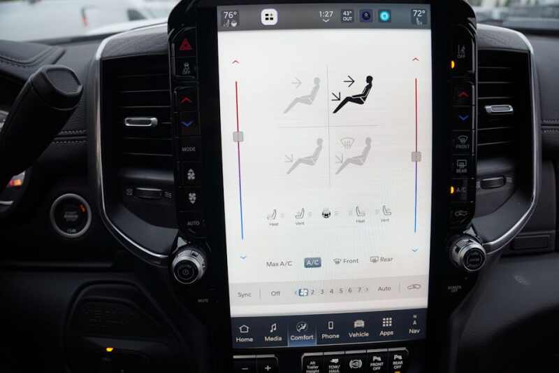 Customer Preferred Package 24H * Towing Technology Group $1,595 * SurroundView Camera System * Trailer Tire Pressure Monitoring System * Trailer Reverse Guidance * 5th Wheel / Gooseneck Towing Prep Group $645 * Night Edition $2,995 * Sport Performance Hood * 20Inch x 8.0Inch Black Painted Aluminum Wheels * TowMode Digital RearView Mirror Package $1,135 * Wired TowMode Camera * Digital RearView Mirror * Laramie Level 2 Plus Equipment Group $4,945 * Dual Wireless Charging Pad * 14.4Inch Touchscreen Display * Traffic Sign Recognition * Uconnect 5 Nav with 14.4Inch Touch Screen Display * Drowsy Driver Detection * Active LaneManagement System * LeatherTrimmed Bucket Seats * Power Heat/Fold/Telescoping Memory Mirrors * Automatic AdjustinReverse Exterior Mirrors * AutomaticDimming Exterior PassengerMirror * Auto Dimming Exterior Mirror * AntiSpin Differential Rear Axle * RainSensitive Windshield Wipers * Remote TailgateRelease * Center Stop Lamp with CargoView Camera * LED Bed Lighting * Deployable BedStep by Mopar * Power Deployable Running Boards * 17Speaker Harman Kardon Premium Sound * Adaptive Steering System * Power Adjustable Pedals with Memory * SprayIn Bedliner by Mopar * Front and Rear Rubber Floor Mats by Mopar $235 * Power Sunroof $1,195 * Instrument Panel Mounted Auxiliary Switches $245 * Clearance Lamps $95 * AutomaticLeveling Rear AirSuspension $1,705 *