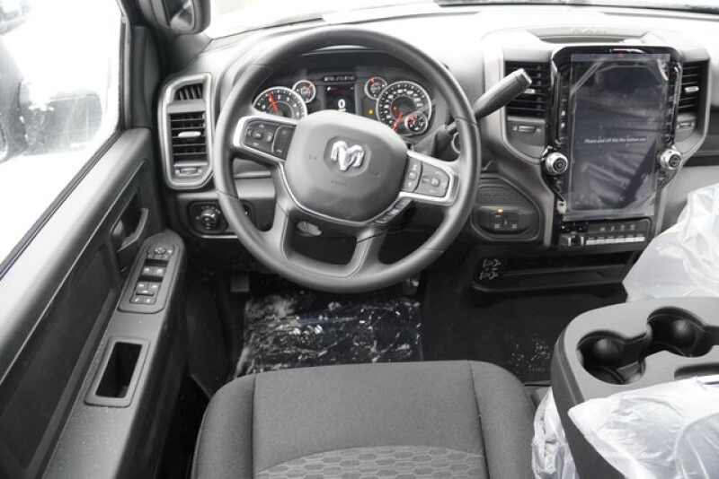 Electric Shift On The Fly Transfer Case * Advanced Multistage Front Air Bags * Pedestrian / Cyclist Emergency Braking * Full Speed Forward Collision Warning Plus * Adaptive Cruise Control with Stop * ParkView Rear Back Up Camera * Anti Spin Differential Rear Axle * Electronic Stability Control * Hill Start Assist * Anti Lock 4 Wheel Disc Brakes * Power Front Windows with 1 Touch Up / Down * Sentry Key Theft Deterrent System * Speed Sensitive Power Locks * Push Button Start * Power Accessory Delay * Selectable Tire Fill Alert * Tire Pressure Information System * 31 Gallon Fuel Tank * Tailgate Ajar Warning Lamp * Trailer Brake Controller * 220 Amp Alternator * Uconnect 5 with 8.4 Inch Touch Screen Display * Google Android Auto * Apple CarPlay * SiriusXM with 3 Month Radio Sub * Ram Connect with Trial * 4G LTE Wi Fi Hot Spot * Full Function Media Hub with 2 USB Plus Aux Port * 40 / 20 / 40 Split Bench Seat * 12 Volt Auxiliary Power Outlet * Cluster with 3.5 Inch TFT Color Display * 18 Inch x 8.0 Inch Steel Black Painted Wheels * LT275 / 70R18E BSW All Season Tires * Manual Folding Telescoping Black Mirrors * Black Headlamp Bezels * Locking Tailgate * LED Low / High Reflector Headlamps * Front LED Fog Lamps * Tailgate Handle LED Hitch Lamp * Class V Receiver Hitch * Trailer Tow with 4 Pin Connector Wiring * Tinted Windshield Glass * Tinted Glass Windows * Automatic Headlamps *