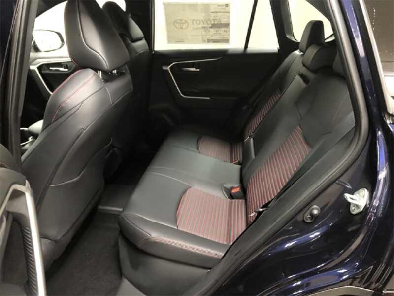 This Toyota RAV4 Plug-In Hybrid is well equipped and includes these features and benefits, 3-Spoke Heated Leather Steering Wheel, Apple CarPlay/Android Auto, Automatic temperature control, Exterior Parking Camera Rear, Fully automatic headlights, Heated Front Bucket Seats, Heated Rear Seats, Mixed Media Seat Trim, Power driver seat, Power Liftgate, Power moonroof, Radio 10.5 Toyota Audio Multimedia, Rain Sensing Wipers, Weather Package, Wheels 19 x 7.5 5-Spoke Blk-Painted Sport Alloy. Blueprint/Midnight Black Metallic 2025 Toyota RAV4 Plug-In Hybrid XSE AWD CVT 2.5L 4-Cylinder DOHC