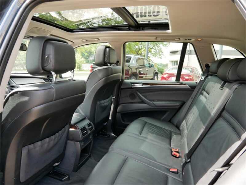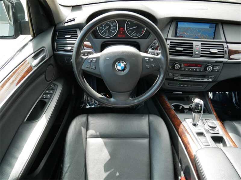 This X5 is well equipped with Black Leather, 10 Speakers, 19 x 9 Light Alloy Star-Spoke (Style 334) Wheels, 3.154 Axle Ratio, 4-Wheel Disc Brakes, ABS brakes, Air Conditioning, Alloy wheels, AM/FM radio, Anti-Theft AM/FM Stereo w/CD/MP3, Anti-whiplash front head restraints, Auto tilt-away steering wheel, Auto-dimming door mirrors, Auto-dimming Rear-View mirror, Automatic temperature control, Bodyside moldings, Brake assist, Bumpers body-color, CD player, Delay-off headlights, Driver door bin, Driver vanity mirror, Dual front impact airbags, Dual front side impact airbags, Electronic Stability Control, Emergency communication system BMW Assist, Four wheel independent suspension, Front anti-roll bar, Front Bucket Seats, Front Center Armrest, Front dual zone A/C, Front fog lights, Front reading lights, Fully automatic headlights, Genuine wood console insert, Genuine wood dashboard insert, Genuine wood door panel insert, HD Radio, Head restraints memory, Heated door mirrors, Heated Front Bucket Seats, Heated front seats, High intensity discharge headlights Bi-xenon, Illuminated entry, Leather steering wheel, Low tire pressure warning, Memory seat, Navigation System, Nevada Leather Upholstery, Occupant sensing airbag, Online Information Services, Outside temperature display, Overhead airbag, Panic alarm, Passenger door bin, Passenger vanity mirror, Power adjustable front head restraints, Power door mirrors, Power driver seat, Power moonroof, Power passenger seat, Power steering, Power windows, Radio data system, Rain sensing wipers, Real Time Traffic Information, Rear anti-roll bar, Rear reading lights, Rear seat center armrest, Rear window defroster, Rear window wiper, Remote keyless entry, Roof rack rails only, Security system, Speed control, Speed-sensing steering, Speed-Sensitive Wipers, Split folding rear seat, Spoiler, Steering wheel memory, Steering wheel mounted A/C controls, Steering wheel mounted audio controls, Tachometer, Telescoping steering wheel, Tilt steering wheel, Traction control, Trip computer, Variably intermittent wipers, Voice-Command, and Weather band radio.