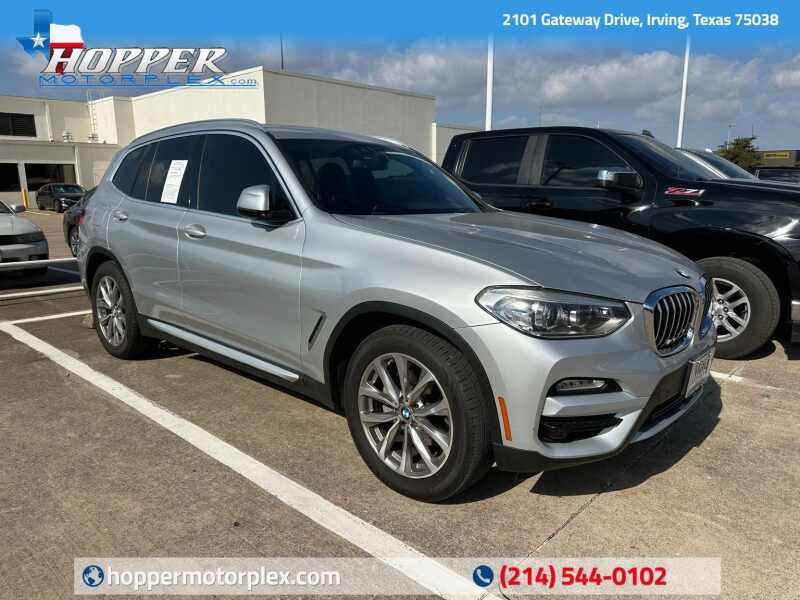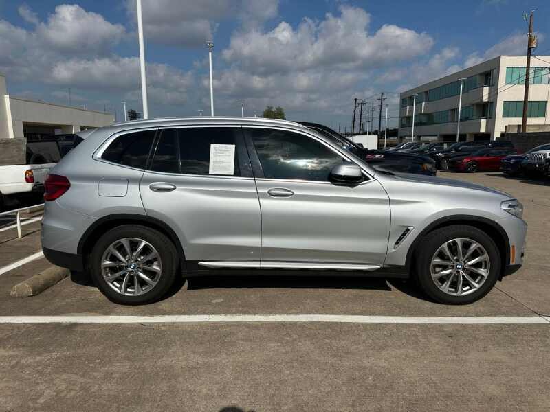 2019 BMW X3 xDrive30i Convenience Package, Panoramic Sunroof, Glacier Silver Metallic 4D Sport Utility AWD 8-Speed Automatic 2.0L I4 TwinPower Turbo 8-Speed Automatic, 12 Speakers, 3.385 Axle Ratio, 4-Wheel Disc Brakes, ABS brakes, Air Conditioning, Alloy wheels, AM/FM radio, Auto-dimming door mirrors, Auto-dimming Rear-View mirror, Automatic temperature control, Brake assist, Bumpers body-color, Comfort Access Keyless Entry, Convenience Package, Delay-off headlights, Driver door bin, Driver vanity mirror, Dual front impact airbags, Dual front side impact airbags, DVD Area Coding (North America), Electronic Stability Control, Emergency communication system BMW Assist eCall, Exterior Parking Camera Rear, Four wheel independent suspension, Front anti-roll bar, Front Bucket Seats, Front Center Armrest, Front dual zone A/C, Front fog lights, Front reading lights, Fully automatic headlights, Garage door transmitter, Genuine wood dashboard insert, Genuine wood door panel insert, Gray Poplar Wood Trim, Hands-Free Bluetooth & USB Audio Connection, Heated door mirrors, Heated Front Seats, Heated Steering Wheel, Hi-Fi Sound System, Illuminated entry, Knee airbag, LED Headlights w/Cornering Lights, Low tire pressure warning, Lumbar Support, Memory seat, Occupant sensing airbag, Outside temperature display, Overhead airbag, Panic alarm, Panoramic Moonroof, Passenger door bin, Passenger vanity mirror, Power door mirrors, Power driver seat, Power Front Seats, Power Liftgate, Power passenger seat, Power steering, Power windows, Radio Control US, Radio data system, Radio AM/FM Stereo w/HD, Rain sensing wipers, Rear air conditioning, Rear anti-roll bar, Rear reading lights, Rear seat center armrest, Rear window defroster, Rear window wiper, Remote keyless entry, Roof rack rails only, Security system, SensaTec Upholstery, SiriusXM Satellite Radio, Speed control, Speed-sensing steering, Speed-Sensitive Wipers, Split folding rear seat, Spoiler, Sport Bucket Seats, Sport steering wheel, Steering wheel mounted audio controls, Tachometer, Telescoping steering wheel, Tilt steering wheel, Traction control, Trip computer, Turn signal indicator mirrors, Variably intermittent wipers, Wheels 19 x 7.5 (Style 692).