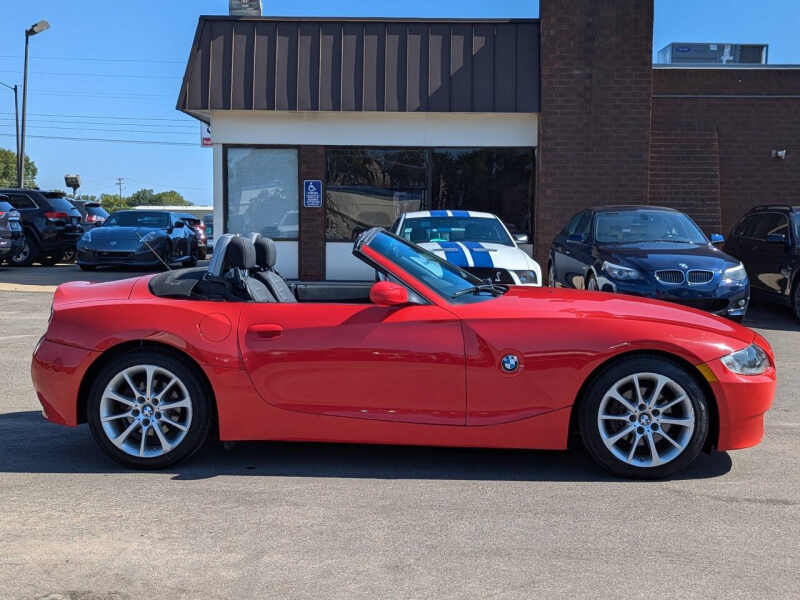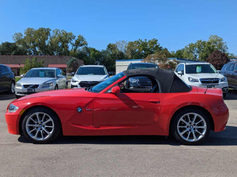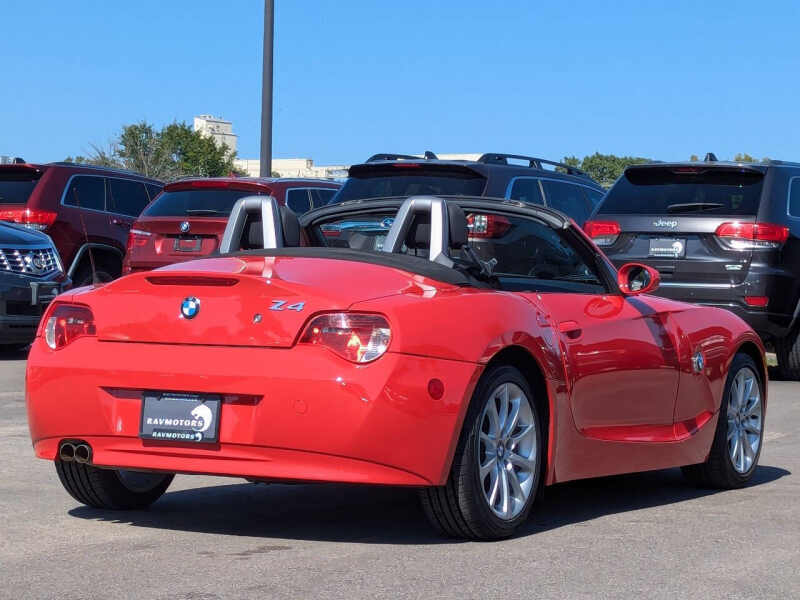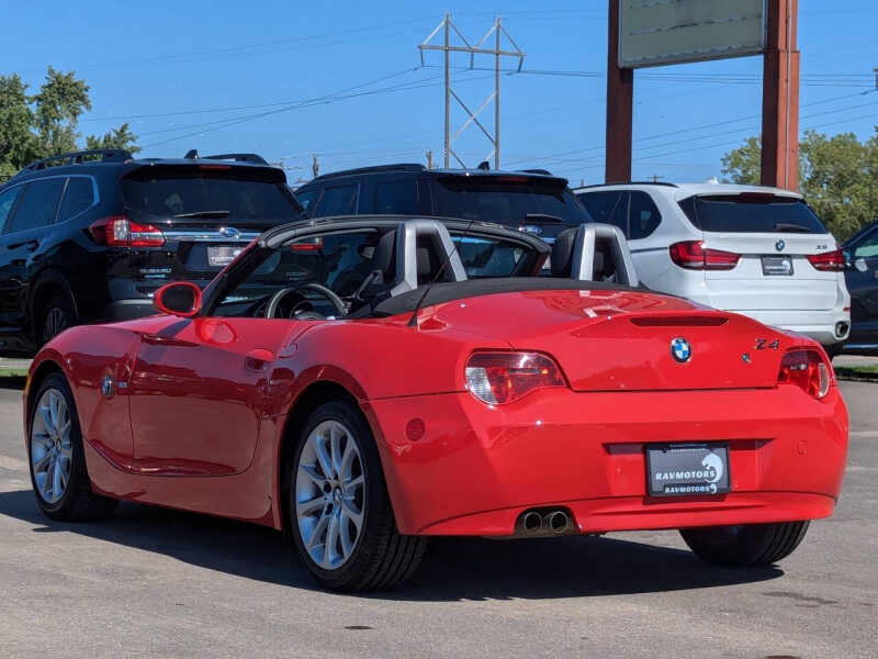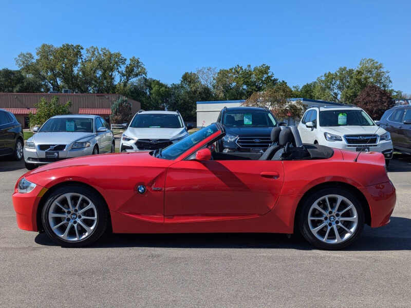 This vehicle is located at our Burnsville store. Turn heads and feel the thrill of open-air driving in this stunning 2008 BMW Z4 3.0i Convertible, finished in a bold and eye-catching red that perfectly matches its sporty personality. With its classic long-hood, short-deck proportions and sculpted body lines, this roadster delivers timeless style and German-engineered performance in one irresistible package. Under the hood, the Z4 boasts a smooth and responsive 3.0-liter inline-6 engine producing 215 horsepower, paired with a precise 6-speed automatic transmission giving you an engaging drive every time you hit the road. The power soft-top drops quickly at the push of a button, letting you enjoy sunshine and scenery with ease, while the sport-tuned suspension and near-perfect 50/50 weight distribution provide sharp, confident handling through every curve. Inside, you'll find a driver-focused cockpit with leather seating, premium materials, and classic BMW simplicityeverything you need, nothing you dont. With relatively low mileage for its age and a reputation for solid reliability, this Z4 isnt just a weekend toyits a timeless, affordable entry into true driving pleasure. Whether you're cruising the coast, hitting back roads, or just want something that makes every drive feel special, this Z4 delivers style, spirit, and smiles in every mile. Stop by RAVMOTORS to test drive this car. Well be more than happy to help you find the right car at the right price. We don't have any pushy or high-pressure salespeople. So come in and see for yourself why we have been the #1 DealerRater used car dealership of the year 5 years in a row. Extended Warranties and Financing options are available. Call us for vehicle availability at 952-456-4041 or email us at ravmotorsinfogmail.com. For more information and a full inventory visit us at www.ravmotors.com. We are open Monday Thursday 10 am 7 pm, Friday - Saturday 930 am 6 pm.