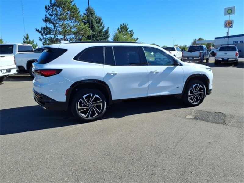 Summit White 2025 Buick Enclave Sport Touring AWD 8-Speed Automatic 2.5L DOHC AWD, 110-Volt Power Outlet, 2nd Row 1-Touch Flat Folding Seat, 3rd Row 60/40 Power Split-Folding Bench, 3rd row seats split-bench, 4-Wheel Disc Brakes, 5,000 lbs Trailering Package, ABS brakes, Alloy wheels, Auto-dimming door mirrors, Auto-dimming Rear-View mirror, Black Lug Nuts & Wheel Lock Kit (LPO), Bose Premium 12-Speaker Audio System, Brake assist, Bumpers body-color, Compass, Driver 4-Way Power Lumbar Seat Adjuster, Driver 8-Way Power Seat Adjuster, Driver door bin, Driver vanity mirror, Dual front side impact airbags, Electronic Stability Control, Front anti-roll bar, Front Bucket Seats, Front Center Armrest, Front Passenger 4-Way Power Lumbar Seat Adjuster, Front reading lights, Head-Up Display, Heated door mirrors, Heated Driver & Front Passenger Seats, Heated front seats, Heated steering wheel, Heated Wiper Park, Heavy-Duty Cooling System, Hitch Guidance, Hitch View w/Pan/Zoom/Tilt Image Adjustment, Illuminated entry, Leather steering wheel, Low tire pressure warning, Memory Settings, Navigation System, Occupant sensing airbag, Outside temperature display, Overhead airbag, Overhead console, Panic alarm, Passenger door bin, Passenger vanity mirror, Perforated Leatherette Seat Trim, Power door mirrors, Power driver seat, Power Liftgate, Power Package, Power Panoramic Sunroof w/Sunshade, Power passenger seat, Power steering, Power windows, Radio Infotainment Center, Rear anti-roll bar, Rear reading lights, Rear window wiper, Remote keyless entry, Security system, SiriusXM w/360L Trial Subscription, Speed control, Spoiler, Sport steering wheel, Steering wheel mounted audio controls, Tachometer, Telescoping steering wheel, Tilt steering wheel, Trip computer, Turn signal indicator mirrors, Universal Home Remote, Variably intermittent wipers, Voltmeter, Wheels 20 Alloy w/High Gloss Black, Wireless Apple CarPlay, Wireless Google Android Auto.