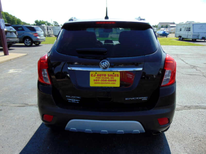 This sleek and stylish 2014 Buick Encore is the perfect blend of luxury and practicality, ready to take you on all your adventures with ease. The shimmering brown exterior exudes sophistication, while the sporty alloy wheels add a touch of attitude to this versatile SUV.Hop inside and you'll be greeted by a spacious and comfortable interior that's perfect for long road trips or quick commutes. With separate climate controls, you and your passengers can each set your ideal temperature for optimal comfort. Let the cruise control take the wheel as you relax and enjoy the ride, while the telescopic steering wheel adjusts to your perfect driving position.Safety is always a top priority with this Buick Encore, featuring a whole host of protective features to give you peace of mind on the road. From the advanced traction control system to the numerous airbags strategically placed throughout the vehicle, you can feel confident knowing that you and your loved ones are always well-protected.Whether you're running errands around town or heading off the beaten path, this Encore has got you covered. The 4WD/AWD system ensures you have maximum traction in any driving condition, while the automatic headlights and fog lights illuminate the way ahead, no matter the weather.When it comes to entertainment, this Buick doesn't disappoint. Tune into your favorite tunes with the CD player or stay connected on the go with the telematics system. The trip computer keeps you informed of your driving stats, while the rear spoiler adds a sporty touch to the exterior design.But that's not all - convenience features like keyless entry, power windows, and a rear window defogger make daily driving a breeze. And with plenty of cargo space, including a cargo area cover and tie-downs, you can easily pack up for a weekend getaway or a trip to the grocery store.So what are you waiting for? Come test drive this fantastic 2014 Buick Encore today and experience the perfect combination of luxury, safety, and performance for yourself! Visit CJ Auto Sales online at www.cjautoinc.com to see more pictures of this vehicle or call us at 507-356-6000 today to schedule your test drive.