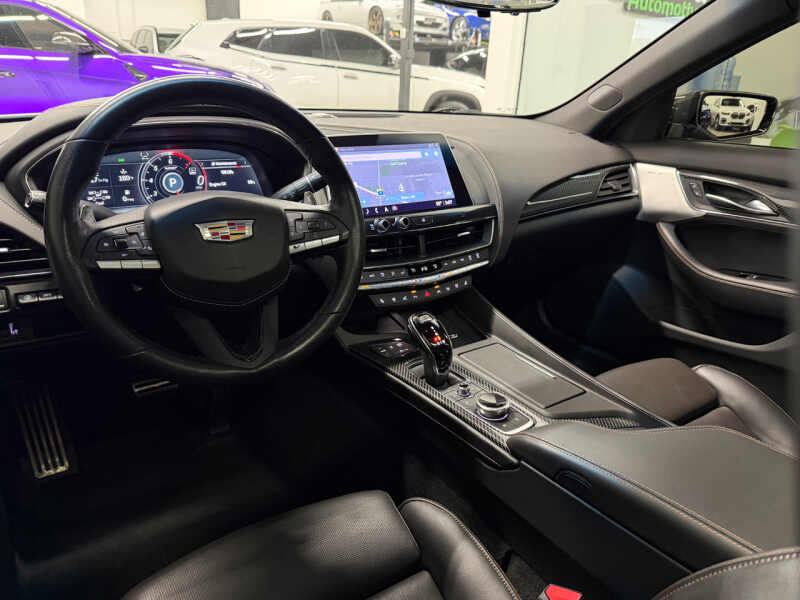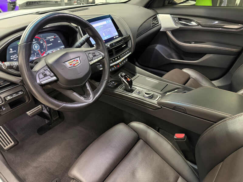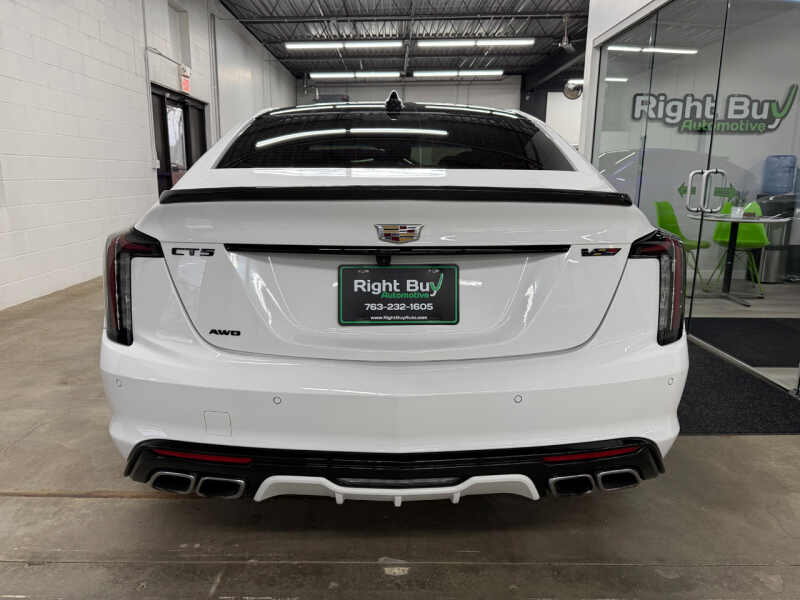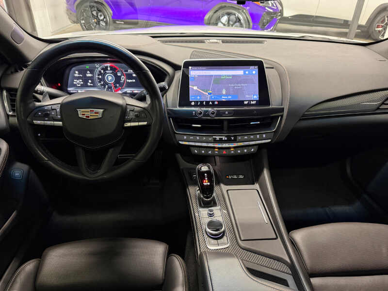 Dealer maintained and serviced. Remaining warranty from Cadillac. Inspection performed. Original MSRP $66,975. This 2021 Cadillac CT5-V features a 3.0L Twin-Turbo V6 Engine producing 360HP/405TQ. 10-Speed Automatic Transmission. All Wheel Drive. Summit White Exterior. Jet Black with Jet Black Accents Interior. Premium Package. Lighting Package. Climate Package. Technology Package. Navigation & Bose Premium Audio System. Dual 10 HD Touchscreen Displays. 20 Gloss Black Alloy Wheels. Parking Package with Rear Camera Mirror and 360 Surround Vision. Heated and Ventilated Front Seats. Heated Steering Wheel. Power Adjustable Front Seats with Lumbar Support and Memory Settings. UltraView Panoramic Sunroof. Ambient Lighting. Adaptive Cruise Control. Lane Keep Assist with Lane Departure Warning. Blind Zone Alert. Forward Collision Alert. Rear Cross Traffic Alert. Performance Data Recorder. Magnetic Ride Control. Brembo Front Brakes. V-Series Performance Suspension. Dual Exhaust System. Keyless Access and Remote Start. Wireless Apple CarPlay & Android Auto. Bluetooth Connectivity. Wireless Device Charging. Dual-Zone Automatic Climate Control. HD Rear Vision Camera. SiriusXM Radio. Rain-Sensing Wipers. Every Vehicle at Right Buy comes with a full inspection report. CarFax vehicle history report. Affordable extended coverage options and low-rate financing options. Set an appointment to view the vehicle in our heated indoor showroom. PRIME PROTECT LEVEL 3 EXCLUSIONARY COVERAGE AVAILABLE 1 YEAR 12K MILES FOR $2,620 OR 6 YEAR 100K MILES FOR $3,540 OTHER TERMS AVAILABLE.
