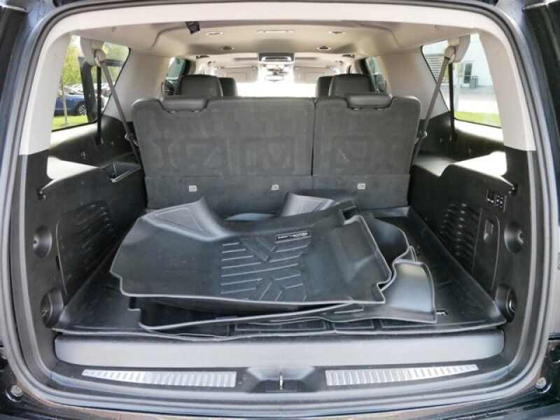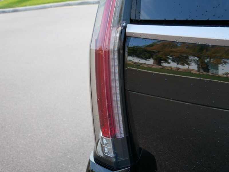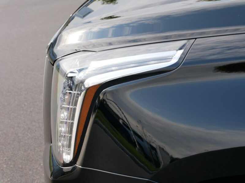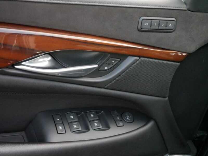 SEATS, FRONT BUCKET with leather seating surfaces, driver and front passenger, 12-way power seat adjusters including 4-way power lumbar control, independently heated driver and front passenger seat cushions and seatbacks (three settings) and 2-position driver memory (STD), REAR AXLE, 3.23 RATIO, LUXURY PREFERRED EQUIPMENT GROUP Includes standard equipment, LICENSE PLATE BRACKET, FRONT, BLACK, JET BLACK, LEATHER SEATING SURFACES with mini perforated inserts, ENGINE, 6.2L V8 WITH ACTIVE FUEL MANAGEMENT Spark Ignition Direct Injection (SIDI) and Variable Valve Timing (VVT), includes aluminum block construction (420 hp 313.2 kW 5600 rpm, 460 lb-ft of torque 621 N-m 4100 rpm) (STD), CADILLAC USER EXPERIENCE WITH EMBEDDED NAVIGATION AM/FM stereo with 8 diagonal color information display featuring touch response, haptic feedback, gesture recognition, Natural Voice Recognition, Phone Integration for Apple CarPlay and Android Auto capability for compatible phone, Collection and Teen Driver. Five USB ports, including one in the articulating storage door/bin and auxiliary audio port (STD), BLACK RAVEN, Wireless Charging located on the top of the center console (The system wirelessly charges one PMA- or Qi-compatible mobile device. To check for phone or other device compatibility, see my.cadillac.com/learn.), Wipers, front intermittent, Rainsense, Wiper, rear intermittent with washer, Windshield, solar absorbing, Windows, power, with driver and front passenger Express-Up/Down and rear passengers Express-Down, Windows, power all doors, comfort open (auto express down via key fob), Wheels, 22 x 9 (55.9 cm x 22.9 cm) 7-spoke aluminum with premium paint and chrome inserts (Upgradeable to (RPT) 22 x 9 6-spoke chrome multi-featured design wheels, (RVA) 22 x 9 dual 7-spoke Ultra Bright finish aluminum wheels with premium paint, (SH0) 22 x 9 12-spoke polished aluminum wheels or (SMI) 22 x 9 6-spoke chrome wheels.).