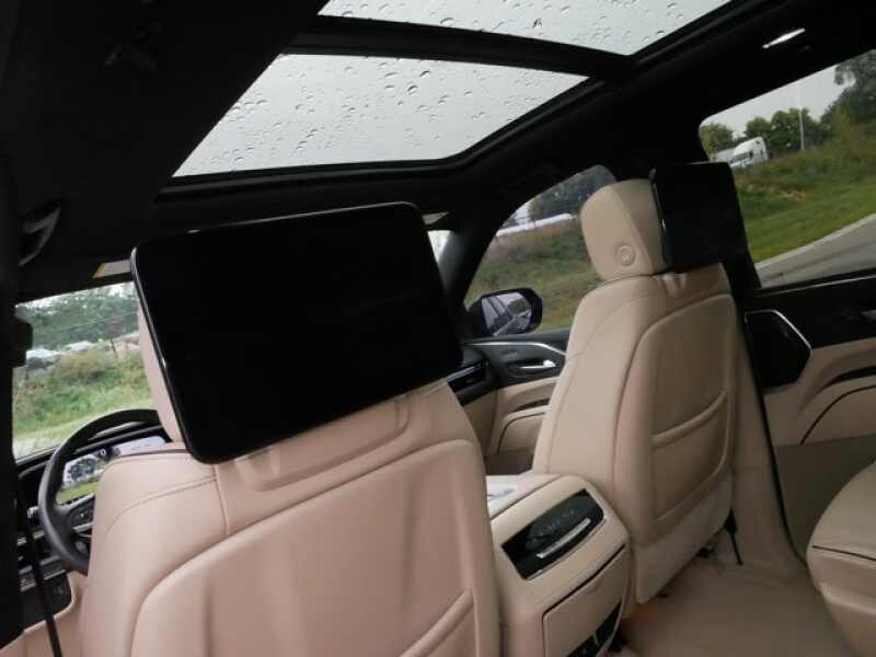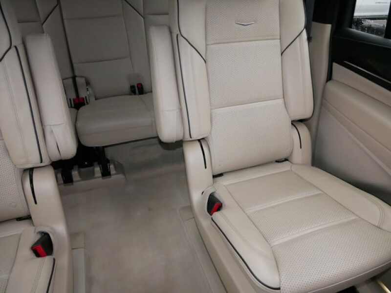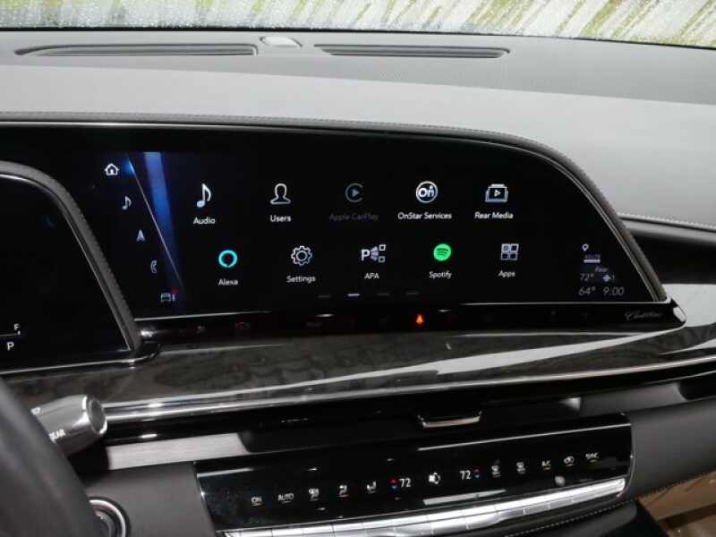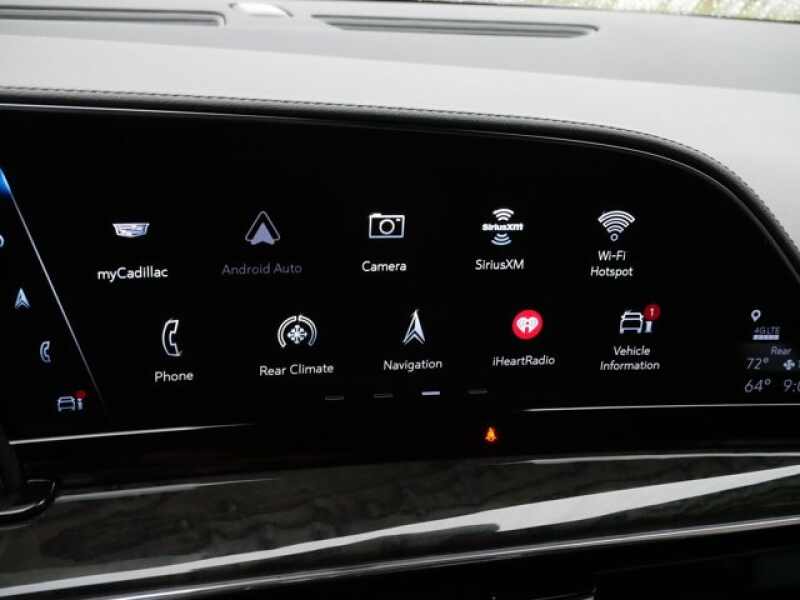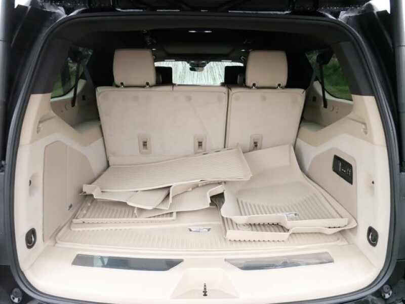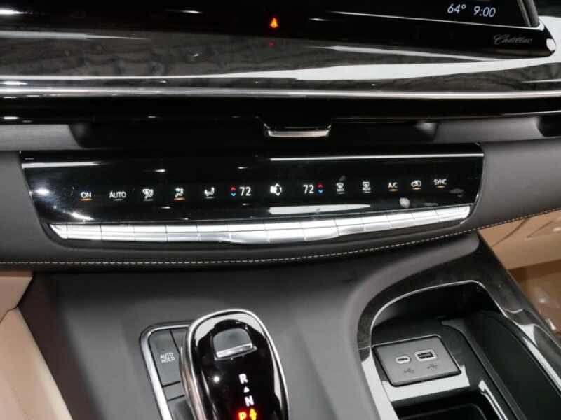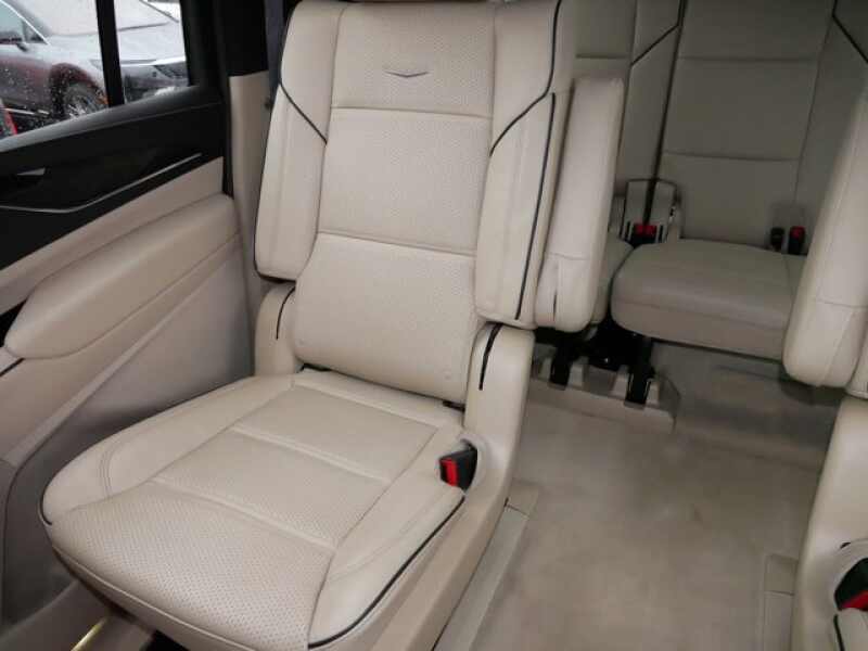 REAR AXLE, 3.23 RATIO, PREMIUM LUXURY PREFERRED EQUIPMENT GROUP includes standard equipment, PARCHMENT WITH JET BLACK ACCENTS, LEATHER SEATING SURFACES WITH MINI-CHEVRON PERFORATED INSERTS (With Parchment Tamo Ash wood trim.), OLED INFOTAINMENT EXPERIENCE WITH NAVIGATION AM/FM/SiriusXM with 360L with 16.9 diagonal color information display (displays and controls navigation, music and all features and functions of the vehicle), personalized profiles for each driver's settings, Natural Voice Recognition, Phone Integration for Wireless Apple CarPlay/Wireless Android Auto capability for compatible phone, Connected Apps and Teen Driver (STD), LPO, FLOOR LINER PACKAGE includes (CAV) All-Weather integrated cargo liner, LPO and (RIB) All-Weather Floor Liner Package, 1st, 2nd and 3rd rows, LPO, LPO, BLUETOOTH HEADPHONES BY AKG, LPO, ALL-WEATHER INTEGRATED CARGO LINER, LPO, ALL-WEATHER FLOOR LINER PACKAGE includes 1st, 2nd and 3rd row coverage, LICENSE PLATE BRACKET, FRONT, ENGINE, 6.2L V8 WITH DYNAMIC FUEL MANAGEMENT Direct Injection and Variable Valve Timing, includes aluminum block construction (420 hp 313.2 kW 5600 rpm, 460 lb-ft of torque 623.7 Nm 4100 rpm) (STD), BLACK RAVEN, Wireless Phone Charging (The system wirelessly charges one compatible mobile device. Some phones have built-in wireless charging technology and others require a special adaptor/back cover. To check for phone or other device compatibility, see my.cadillac.com/learnAbout/wireless-charging or consult your carrier.), Wireless Apple CarPlay/Wireless Android Auto.