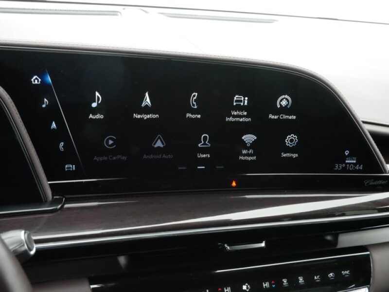 SUPER CRUISE a hands-free driver assistance system for use on compatible roads (Beginning with start of production through October 2, 2022, vehicles will be forced to include either (00U) Not Equipped with Super Cruise and/or (02O) Not Equipped with Super Cruise, which will remove Super Cruise and its content. See dealer for details or the window label for the features on a specific vehicle. Always pay attention while driving and when using Super Cruise. Do not use a hand-held device. Visit cadillac.com/supercruise for compatible roads and full details.), SPORT PLATINUM PREFERRED EQUIPMENT GROUP includes standard equipment, SEATS, SECOND ROW BUCKET, POWER RELEASE (STD), SEATS, FRONT BUCKET (Includes Semi-Aniline leather, 16-way driver and front passenger adjustments with massage.) (STD), REAR AXLE, 3.23 RATIO, OLED INFOTAINMENT EXPERIENCE WITH NAVIGATION AM/FM/SiriusXM with 360L with 16.9 diagonal color information display (displays and controls navigation, music and all features and functions of the vehicle), personalized profiles for each driver's settings, Natural Voice Recognition, Phone Integration for Wireless Apple CarPlay/Wireless Android Auto capability for compatible phone, Connected Apps and Teen Driver (STD), NOT EQUIPPED WITH 2ND ROW EXPRESS-UP WINDOW CONTROL see dealer for details. (Beginning with start of production, vehicles will be forced to include (00N) Not Equipped with 2nd Row Express-Up Window Control, which removes only 2nd Row Express-Up Window Control functionality. See the window label for the features on a specific vehicle.), GVWR, 7600 LBS. (3447 KG) (STD), ENGINE, 6.2L V8 WITH DYNAMIC FUEL MANAGEMENT Direct Injection and Variable Valve Timing, includes aluminum block construction (420 hp 313.2 kW 5600 rpm, 460 lb-ft of torque 623.7 Nm 4100 rpm) (STD), DARK AUBURN WITH JET BLACK ACCENTS, FULL SEMI-ANILINE LEATHER SEATS WITH MONDRIAN QUILTING (With Bitter Lace wood trim.), CRYSTAL WHITE TRICOAT, ASSIST STEPS, POWER-RETRACTABLE WITH PERIMETER LIGHTING, see onstar (subscription required).com for information. Access the entire suite of OnStar Safety (subscription required) & Security Services and Connected Services. For retail customers, this includes the OnStar Guardian app (subscription required), 36 months of SiriusXM with 360L, connectivity for available In-Vehicle Apps, In-Vehicle Wi-Fi Hotspot data and Remote Access through the myCadillac mobile app. Fleet customers will receive OnStar Vehicle Insights (subscription required) instead of Remote Access Eligible vehicles Premium Plan, including the Connected Vehicle Plan and the OnStar Safety (subscription required) & Security Plan. Connected Vehicle Plan includes connectivity for available in-vehicle apps, Remote Access Plan (excluding Fleet vehicles, which will receive OnStar Vehicle Insights (subscription required) ) and In-Vehicle Wi-Fi Hotspot data. OnStar Safety (subscription required) & Security Plan includes access to the OnStar Guardian App (subscription required), Automatic Crash Response, Emergency Services, Crisis Assist, Roadside Assistance and Stolen Vehicle Ass, Wireless Phone Charging (The system wirelessly charges one compatible mobile device. Some phones have built-in wireless charging technology and others require a special adaptor/back cover. To check for phone or other device compatibility, see my.cadillac.com/learnAbout/wireless-charging or consult your carrier.), Wireless Apple CarPlay/Wireless Android Auto.