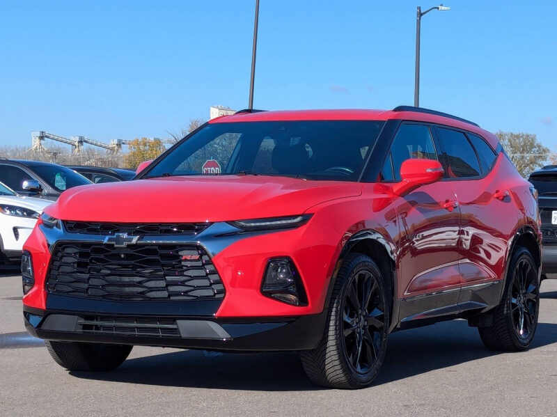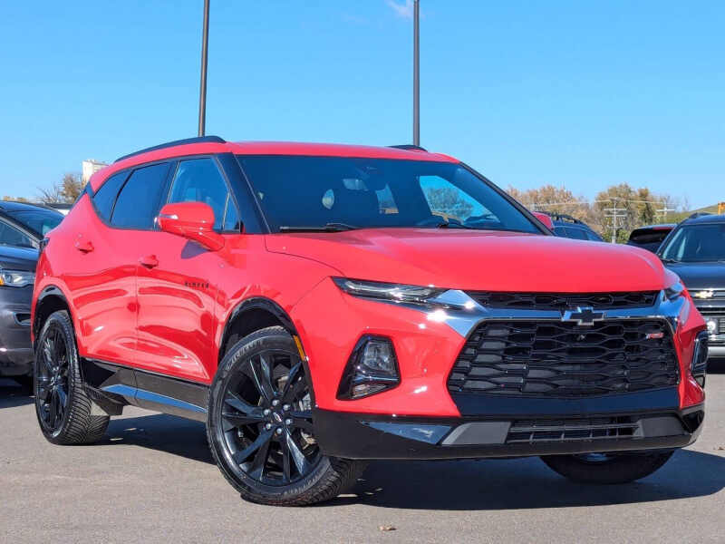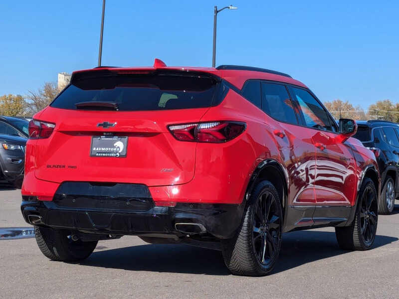 This vehicle is located at our Burnsville store. Unleash bold style and dynamic performance with the 2021 Chevrolet Blazer RS AWD, the midsize SUV designed for drivers who want sport-inspired sophistication without sacrificing practicality. With its aggressive Camaro-inspired design, signature blacked-out grille, and 20-inch dark-finish alloy wheels, the Blazer RS commands attention from every angle. Beneath the hood, a potent 3.6L V6 engine delivers 308 horsepower, paired with a smooth 9-speed automatic transmission and intelligent all-wheel drive for confident traction and exhilarating performance in any condition. Step inside and youre greeted by a driver-focused cockpit with premium leather-appointed seating, red contrast stitching, and ambient interior lighting that amplifies the RSs sporty attitude. The intuitive 8-inch Chevrolet Infotainment 3 Plus system with Apple CarPlay, Android Auto, and available navigation keeps you seamlessly connected, while advanced safety technologieslike Rear Cross-Traffic Alert, Lane Keep Assist, and Adaptive Cruise Controlhelp you stay protected on the road. With a perfect balance of muscle, refinement, and versatility, the 2021 Chevrolet Blazer RS AWD isnt just an SUVits a statement of style and performance built to turn every drive into an experience. Stop by RAVMOTORS to test drive this car. Well be more than happy to help you find the right car at the right price. We don't have any pushy or high-pressure salespeople. So come in and see for yourself why we have been the #1 DealerRater used car dealership of the year 5 years in a row. Extended Warranties and Financing options are available. Call us for vehicle availability at 952-456-4041 or email us at ravmotorsinfogmail.com. For more information and a full inventory visit us at www.ravmotors.com. We are open Monday Thursday 10 am 7 pm, Friday - Saturday 930 am 6 pm.